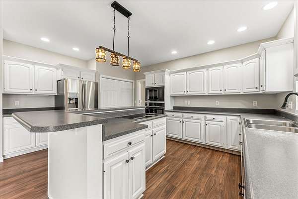 This stunning 4-bedroom, 2-story brick-front home sits on nearly 6 beautiful acres, offering the perfect blend of comfort, space, and privacy. The upper level features three spacious bedrooms, a full bath, and a luxurious primary suite with vaulted ceilings, a walk-in closet, and an en suite bathroom complete with a jacuzzi tub, separate shower, and double sinks. The main floor boasts a welcoming living room, formal dining room, a well-appointed kitchen that opens to a bright breakfast area and cozy family room with a fireplace, plus a full bathroom for added convenience. The full basement provides a large recreation room, a full bath, and abundant storage space. Outside, enjoy a fenced-in area, expansive concrete patio with privacy fence, a relaxing back deck overlooking the property, and both an attached and detached garage for all your vehicles and equipment. The detached building has a large finished room on one side, with space for a car and/or equipment on the other. The 6 ft high chain link fence encloses a sizable area off the back of the house creating a private park all of your own. This property offers the perfect country retreat with modern amenities and endless possibilities.