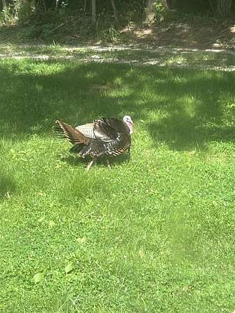 - Barn, Covered Front Porch, Covered Patio, Exterior Lights, Landscaping, Mature Trees, Trees