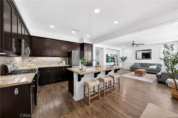 Welcome to the beautifully maintained detached home in the gated Brio Community. Step inside to an inviting space filled with natural light, high ceilings, and recessed lighting throughout. The spacious open layout offers a living and dining area that flows seamlessly into the kitchen, featuring a large center island with bar seating, ideal for everyday living and entertaining. The private backyard is low-maintenance and perfect for outdoor enjoyment.