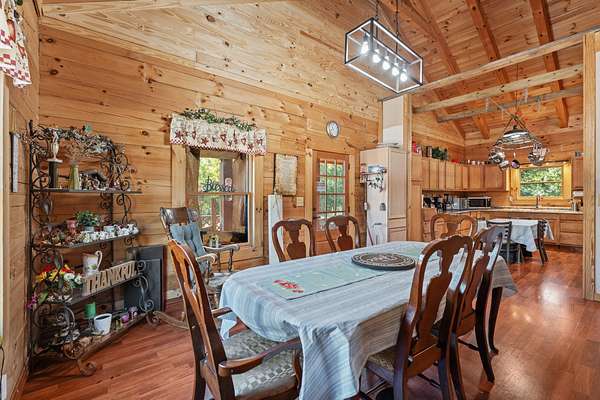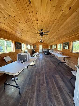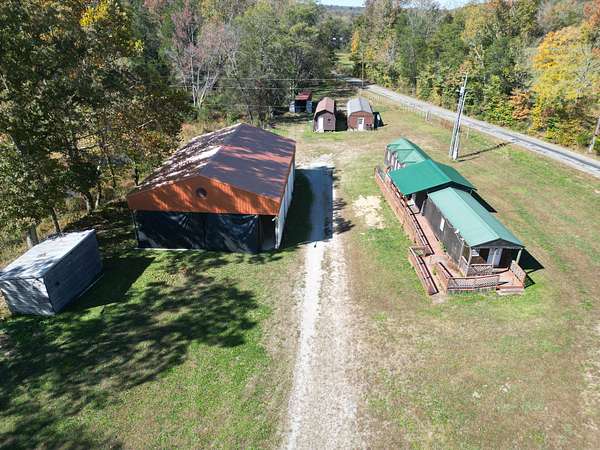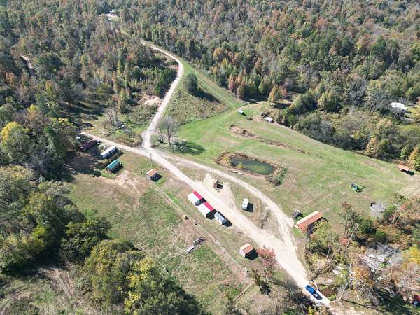 Property Highlights: o Approximately 10 developed acres with the balance in gorgeous hardwood forest, flowing creek, stocked pond, and year-round spring o 8 full-hookup RV sites (3 - 50 amp, 5 - 30 amp) o o 72'x12' multi-purpose building (former store/office/reception/theater room) o 12'x40' game room o 12'x40' activity center o 14'x40' dining hall o Three guest cabins: 12x16 (w/full bath), 12x26 (2-bedroom), 12x12 (1-bedroom) - all furnished o Two 10'x16' bathhouses with 5 private shower/toilet/vanity suites each o Additional restroom building and storage o Small pavilion + massive 40'x60' covered pavilion with concrete floor, stage lighting, and seating o Private well serving the log cabin; 700-gallon spring reservoir feeding all other facilities o Two septic systems (700 gal + 1,500 gal)
