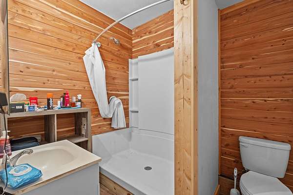 - Map 057 Parcel 008.02 (.08 ac) - 1,536 sq ft authentic log cabin featuring 3 bedrooms, 2 baths, soaring ceilings, and an unfinished walk-out basement ready for your custom expansion.