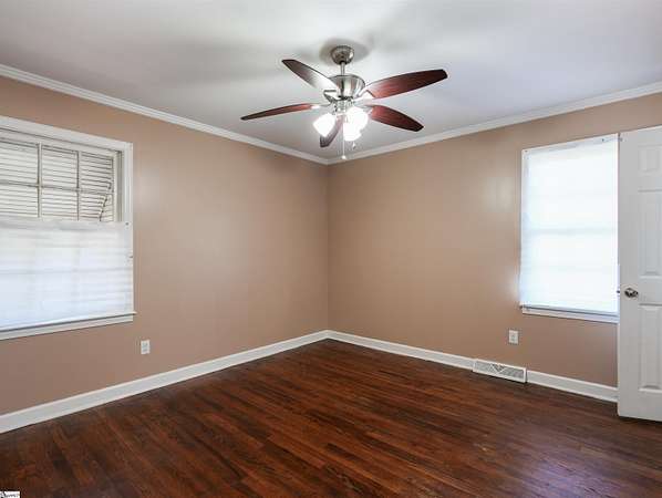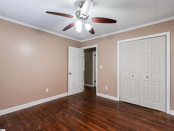 Hard-to-find opportunity in today's market! This 3 bedroom, 1.5 bath brick ranch offers over 1,300 sq. ft. of living space and sits on ~3 acres just minutes from downtown Fountain Inn. Inside, you'll find original hardwood floors in much of the home, a spacious living area, partially updated baths, and new light fixtures. (The 1/2 bath had a shower & the plumbing was capped.) Outdoors, the property provides a mix of open yard, mature trees, and even a creek. The backyard overlooks a neighboring horse farm -- a peaceful country setting without sacrificing convenience. Plenty of paved parking, a single-car carport, and a large attached utility/laundry room add functionality. Additional features include a crawl space foundation, gas heat (approx. 10 years old), and well/septic. Sellers note that public water and sewer are available in the area (buyer to verify details). Home is being sold as-is, giving buyers the chance to put their own finishing touches on this rare brick ranch with acreage. Best of all -- no HOA! Schools verified on Greenville County Schools website but subject to change. Contact Dana Garris for more details. (864) 313-2157