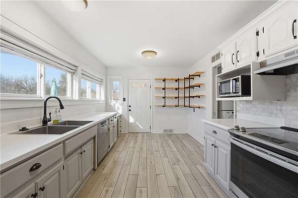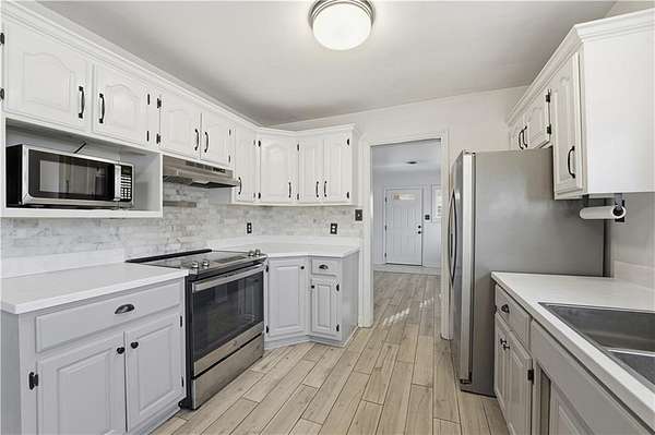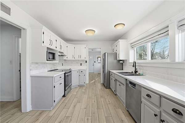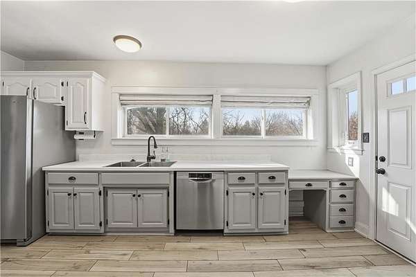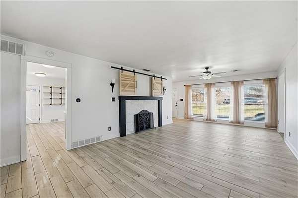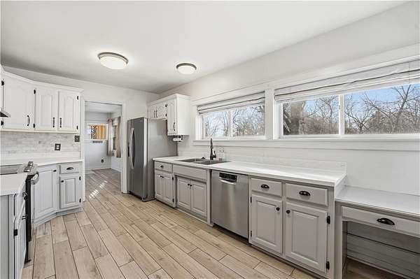 Welcome home to this stunning, move in ready Ranch tucked far back from the road on 1.6 private acres, offering peace, space, and modern updates throughout! The large kitchen is a dream, featuring stainless steel appliances, a deep stainless sink, granite countertops, tile backsplash, walk-in pantry, desk area and tons of cabinet space! Industrial shelving, and space for a cozy breakfast table make this the perfect spot for morning coffee. Refrigerator to stay. Enjoy a spacious living/dining room combination anchored by a gorgeous marble fireplace. This home offers beautifully updated large bedrooms and a fully updated bathroom. A generous laundry room also provides excellent storage or additional pantry space. Washer and dryer to stay as well, making this home truly turnkey. The additional rec room is perfect for a home office, workout space, or playroom, the options are endless. Outside features a deck overlooking a large private fenced backyard, ideal for relaxing or entertaining. The property includes an attached garage plus an additional shed, perfect for storage or a small workshop. Private. Updated. Main level living. Move-in ready. This one checks all the boxes! Property qualifies for 100% financing -with the seller including all appliances, you could move into a new home with little to no money out of pocket! This one is a must see!