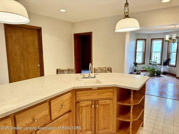 This gem is located on 2+ acres within the city limits! It has a 3-car pole barn, a second garage, an in-ground pool, 1st-floor bedroom-laundry-full bath! The original house was renovated w/a modern 2-story addition by the previous owners; loads of living & storage space indoors and out! Upon entering you'll find yourself in an expansive kitchen, open to living room, and, on the opposite end, a dining area. Through the dining room you enter the great room w/wood-burning fireplace. The exterior doors lead to a large screened-in area overlooking the pool. Upstairs is a large primary bedroom w/its own full bath complete with Jacuzzi tub and separate shower. There are two additional bedrooms and second full bath upstairs! New roof in 2022! Showings start 10/22/25, schedule your showing today!