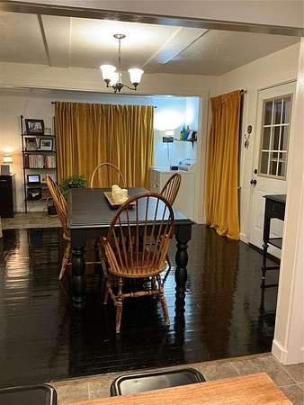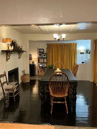 Enjoy Restriction free living. Inviting two-bedroom, one-bathroom, almost 2 acres with a creek. Home and acreage blends rustic charm with modern updates. Inside, original hardwood floors are complimented with Vinyl flooring and carpet. Fresh texture, paint, and ceiling fans, the remodeled kitchen features contemporary finishes, while a separate dining with a fireplace can be accessed from a side entry--this offers the perfect space for gatherings. A dedicated laundry room along with a cozy nook for a desk or bookshelf, adds both comfort and practicality. Sliding glass doors open to a covered back porch, ideal for enjoying the outdoors year-round.