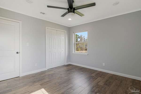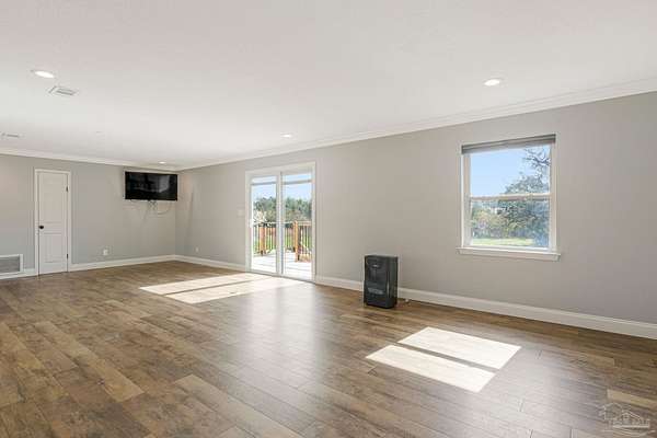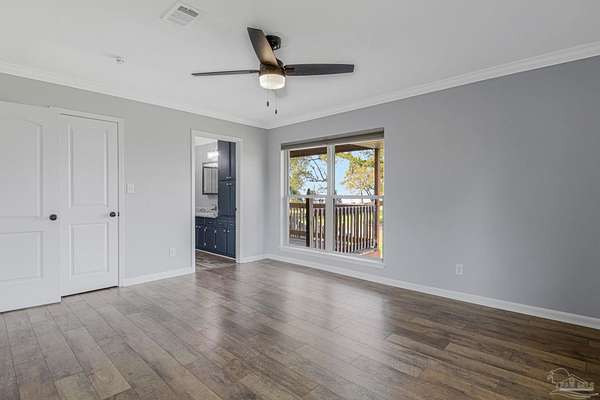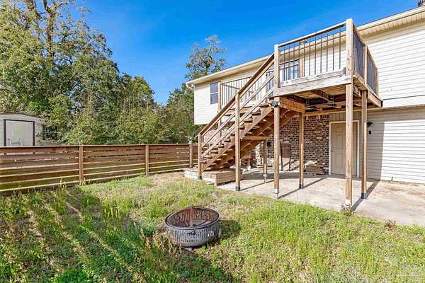 Warning: If you don't like watching sunsets over the bay from your front porch, this property may not be for you. This is an angler's dream home... bring your boat AND your RV. This affordable 3 bed/2 bath home sits on just shy of 2 acres and comes with a waterview of Escambia Bay, no HOA, and public boat ramp access less than a half mile away! The home has an enclosed garage area for storage, a home gym, or a large workshop. The upstairs living area was updated in the past 5 years and was just freshly painted, includes granite countertops, a large sink, a massive kitchen island and features a large, open-concept floor plan, and a small fenced-in area out back for the pets. Ask about loan assumption terms.