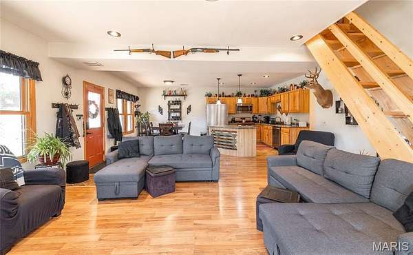 Escape to your own private retreat with this beautifully updated 4-bedroom, 2-bathroom home, nestled on 5.91 acres of serene, wooded landscape. Enjoy peaceful mornings and quiet evenings from the cozy covered porch, perfect for taking in the surrounding nature year-round. The upstairs loft area has been thoughtfully enclosed, creating two additional bedrooms upstairs and maximizing the home's functional living space. Inside, you'll find a spacious kitchen with abundant cabinetry and stainless steel appliances, ideal for both everyday living and entertaining. A versatile bonus room adds even more flexibility--perfect for a home office, playroom, or guest space. Recent upgrades provide added value and peace of mind, including new plumbing, a new water heater, and a new water softener. Outside, the partially fenced yard offers plenty of space for pets, gardening, or outdoor gatherings, while the 12x14 storage shed provides ample room for tools and equipment. Experience the privacy and tranquility of country living with the comfort of modern updates--this secluded gem is truly ready to welcome you home.