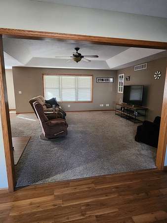 Located in the quiet, small-town village of Colfax in McLean County, this inviting single-family home sits on a generous in-town acreage that delivers the rare combination of space, privacy, and convenience. Offering 1,752 square feet of comfortable living area, the home was built in 2006 and showcases the benefits of modern construction while still capturing the friendly, relaxed charm of village living. Inside, the home features 3 bedrooms and 2.5 baths, thoughtfully arranged in an open-concept layout that maximizes natural light and creates an easy flow between living, dining, and kitchen spaces. Large windows frame peaceful views of the surrounding trees and open land, giving every room a sense of tranquility. With plenty of square footage and a well-designed footprint, the home also offers ample opportunity for personalization-whether you envision updated finishes, expanded living zones, or custom touches to make the space uniquely yours. The open, unfinished basement provides a fantastic blank canvas with direct walk-out access to the outdoors. It's ideal for future expansion-think family room, home gym, workshop, or additional bedrooms-while also offering abundant storage space right now. Car enthusiasts and hobbyists will appreciate the oversized 3-car garage equipped with radiant floor heat, making it comfortable and functional year-round. The home's geothermal heating and cooling system adds an exceptional level of energy efficiency, delivering consistent comfort and significant utility cost savings. Outside, the property truly shines. The expansive lot allows for endless possibilities: create a beautifully landscaped yard, plant a garden, build outdoor entertaining areas, or simply enjoy the open space. A scenic timber area at the back of the property adds privacy and natural beauty, complete with walking trails and direct river access-perfect for outdoor enthusiasts, nature lovers, or anyone who values peaceful, scenic surroundings.