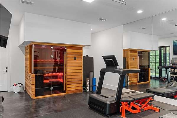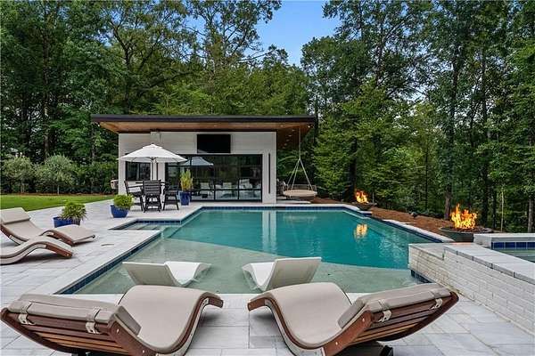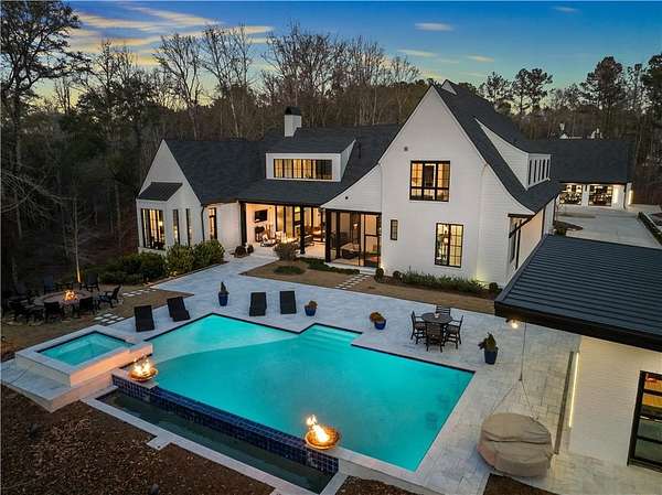 Welcome to a rare offering in Auburn's prestigious Bridle Creek- a custom-built estate defined by timeless craftsmanship, curated luxury, and unmatched privacy on 8 pristine acres. Every detail, from the architectural flow to the finishes, was selected to elevate daily living into something extraordinary. Step inside and let your home become a sanctuary. Prepare dinner in your gourmet kitchen while your guests mix and mingle effortlessly throughout your open-concept entertaining space. Grab popcorn, gather the family, and let your personal theater transport you to the heart of your favorite movie. Work from your home office with all the professionalism of a true office setting--plus effortless access to the driveway. Cozy up on the couch with a glass of wine as the fireplace warms the room, accordion doors open to the evening breeze and let the crickets serenade your night. Let the wall of windows frame nature as your daily backdrop, bringing the outside in. Natural light dances across the mirrored ceiling in the primary, amplifying both the brightness and the sense of space. The primary bath is inspired by the open-air showers of South Africa, oversized tinted windows let you indulge in the luxury of bringing the outdoors in--privately. Share a glass of wine and stories in the custom designed wine cellar or begin your morning with a workout, and then relax and rejuvenate in the sauna. Host family and friends in your resort-style pool and jacuzzi, with gas fire bowls adding warmth and ambiance all year round. Experience luxury indoor/outdoor hosting in the pool house with three operational glass garage doors that open to a kitchenette, TV, and fireplace. Pull into your attached, climate-controlled garage and step effortlessly into your butler's pantry and kitchen--where convenience meets charm. Showcase your collectible cars in museum-like style while keeping them comfortably and carefully stored, with all the tools you need within arm's reach.