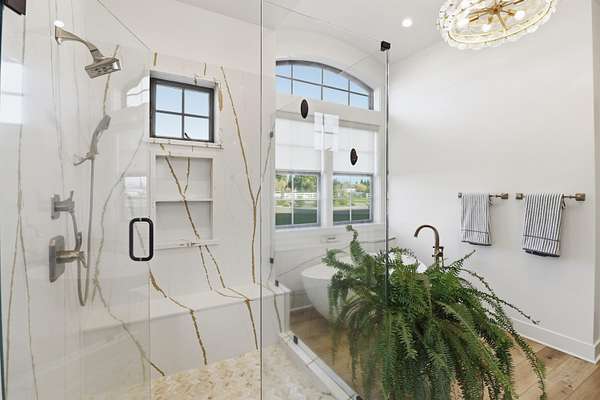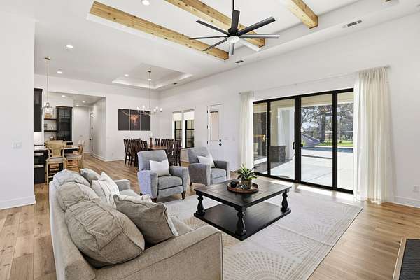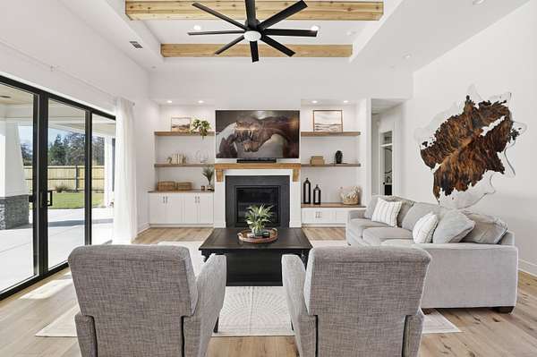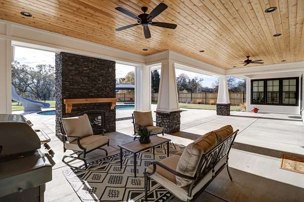 2024 Built Custom Estate home on 8.68 creek front acres. massive pull through RV shop and RV carport with upstairs bonus room with mini-split. Swimming pool with slide, fire pit, covered outdoor fireplace area and detached gazebo. Owned solar and Generac generator. Soaring ceilings welcome you into this Cottonwood beauty. 3,864 square feet with additional upstairs bonus room above the garage for over 4,100 square feet under one roof. Open concept Living room, dining room and Kitchen. Butler's pantry with coffee bar. Split bedroom floor plan. Spacious laundry room. Beautiful primary suite with separate vanities, large shower and soaking tub. Sunroom/Sitting room off primary bedroom for additional office/quiet space. RV shop/barn has downstairs workshop area and full bathroom and the upstairs bonus room. Cottonwood Creek frontage for year round waterfront enjoyment.