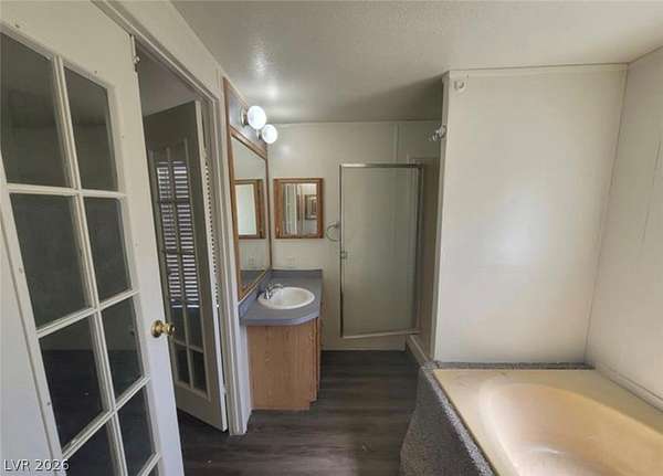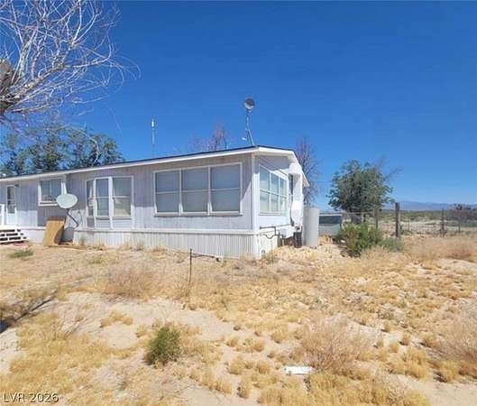 Est $1,481/moNO HOA. This quite land has over 2 acers!!! HUGE LOT Located Just an hour and a half OUTSIDE OF LAS VEGAS located just 42 miles from the M Resort / Desert Living at its best! The property has a manufactured home that features 3 bedroom and 2 full bathrooms. The home is converted into real property. Make this the investment or home of your dreams! EASY OFF GRID LIVING...Double Wide... Fresh paint and NEW flooring!!