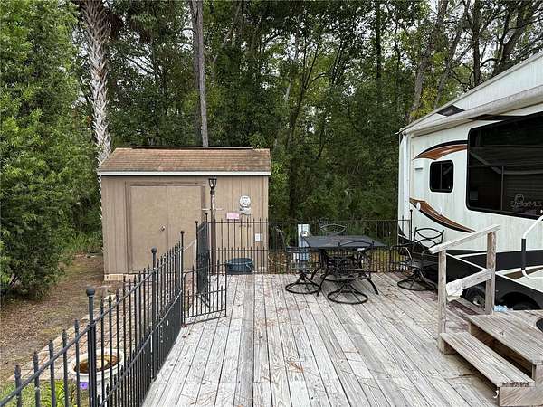 Welcome to 3021 NE 104th Terrace, Silver Springs, FL 34488 -- a beautiful lot in a 55+ gated community where you can soak up the Florida sunshine surrounded by peace, nature, and friendly neighbors. This upgraded, fully paved lot offers easy upkeep and features a spacious deck perfect for relaxing or entertaining, plus an 8' x 12' shed complete with a washer and dryer. Immerse yourself in the tranquility of nature and take a short walk to the Ocklawaha River, where you can kayak alongside gentle manatees, watch playful monkeys, and enjoy stunning natural scenery. The community boasts exceptional amenities including a clubhouse, heated pool, hot tub, fitness center, shuffleboard courts, and access to the scenic Greenway hiking trails. Perfectly located just outside Ocala, you're only minutes from Silver Springs State Park, home to crystal-clear waters and the famous glass-bottom boat tours. A short drive takes you to Historic Downtown Ocala and The Square, filled with charming shops, a nostalgic candy store, unique restaurants, the Marion Theatre, a lively comedy club, and even a classic pool hall above Brick City BBQ. Experience the best of Florida living -- nature, recreation, and small-town charm -- all while owning your land, with the lot deeded in your name. The affordable HOA fee includes road maintenance, water, sewer, trash, lawn care, and full access to all community amenities. Don't miss your chance to enjoy this perfect blend of serenity, adventure, and convenience in the heart of Silver Springs!
