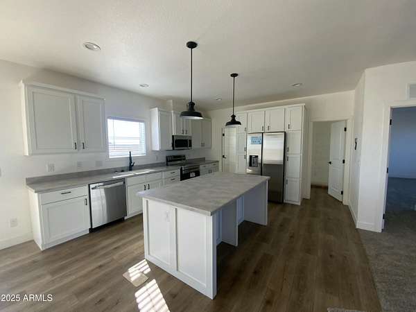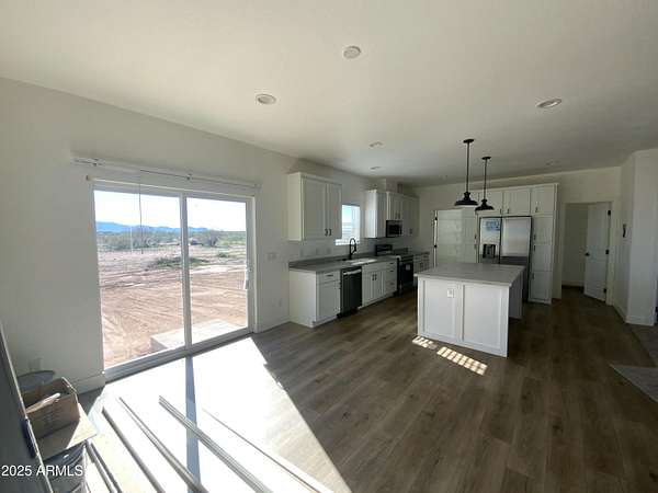 This 4 bed 3 bath on just over 2 Acres offers a peaceful rural lifestyle with stunning mountain views! The area has strong home values. This listing Includes 2 parcels! Giving flexibility for a second house-maybe rental income or a family compound. Horses, RVs, or a huge workshop is also a possibility. It's ideal for those seeking freedom (No HOA). This home features two master closets a huge walkthrough kitchen pantry, 9ft ceilings, Jack & Jill Bath and two others for a total of 3 full bathrooms! 25% well share, and wide outdoor spaces: 100 Acres of State trust land directly adjacent to the south; perfect for recreation! With its quiet charm, large home and balance between country living and city access, this Wittmann Property delivers both value and wide-open relaxed Arizona living