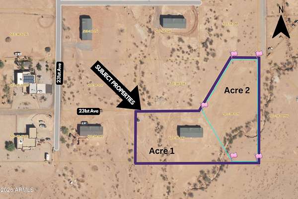 Lone Mountain to 229th AVE. Turn left (south) 1/2 mile to Montgomery Rd. Turn Right (west) on Montgomery Rd, and Left (south) on 231st to end. Make at left. 2nd House and End of Cul de Sac House is Facing North GPS: 33.757019 , -112.558350