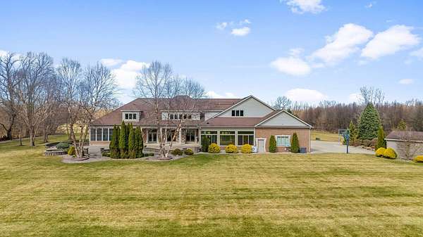 Not the same home you think you've seen before! Major renovations: all new paint, flooring, lighting, hardware and many more. Professionally staged by Flourish Interiors this home is less than half the cost of what it would take to build it today. This extraordinary custom-built estate in an exclusive gated community, where luxury meets tranquility on 8.2 private acres. This stunning residence boasts over 11,000 sq ft and offers 5 bedrooms, 8 baths, a guest house with additional bedrooms and bath and is designed for upscale living and unforgettable entertaining making it the perfect layout for multiple stages of life. Located near the Indiana state line, it's the perfect retreat for social events and refined everyday living. Step inside to discover a grand main-floor primary suite with