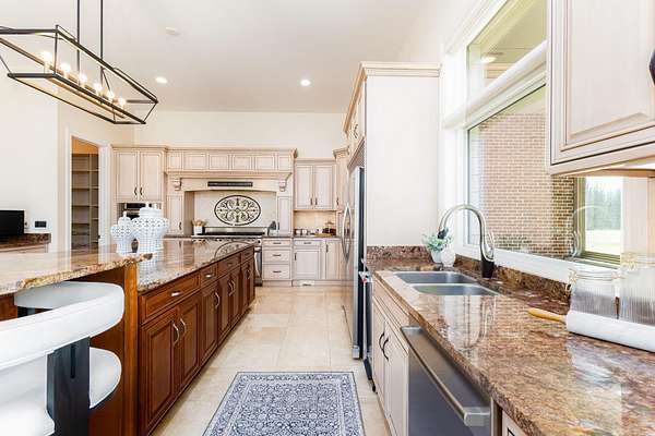 - Ceiling Fan(s), Center Island, Eat-In Kitchen, Garage Door Opener, Guest Quarters, Pantry, Wet Bar