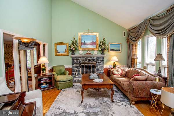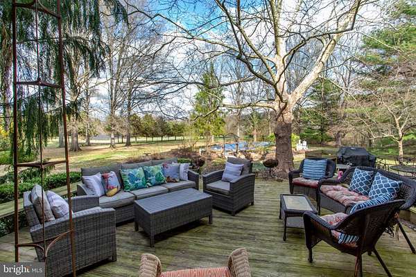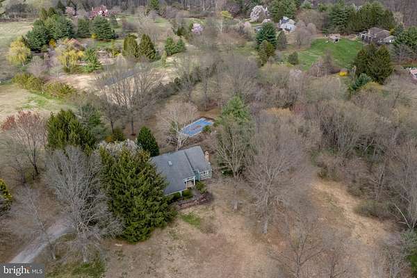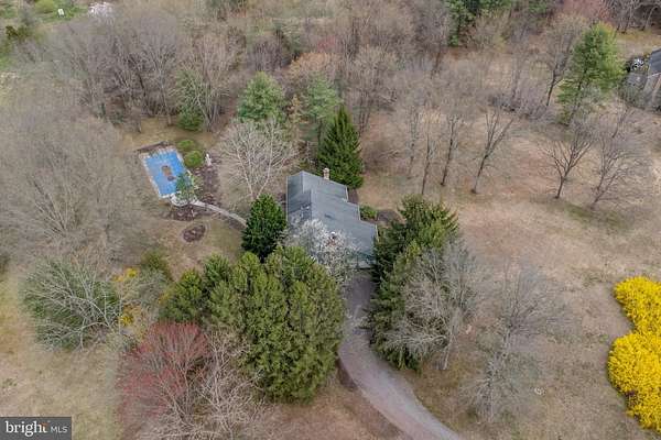 Idyllic private setting of 2.6 acres with the house hidden from view. If you want a serene retreat in a great location, a home with spacious rooms, great floor plan, and lots of character and ambiance, you will want to see this property. A winding driveway takes you to the side of the house with a 2-car garage and a very large area for parking. A short walk to the front reveals a custom built contemporary-influenced house. Step inside to a welcoming foyer. To your right is the living room with view of the upstairs staircase, soaring windows in a vaulted ceiling, woodburning stone fireplace, and pillars that frame the adjoining dining room. The kitchen has retro style cabinets that work well with the high-end GE Cafe appliances with copper handles. The open concept includes a peninsula with seating and a sitting or casual dining area with a slider to the expansive 2-level deck and in-ground swimming pool. The family room has a cozy woodburning stove . This open concept area is the gatheringplace for relaxation, conversation, cooking, and accessing the exterior features. A laundry room with entrance to the 2-car garage and a powder room complete the first floor. Upstairs are four bedrooms, one of which is used as an office for the primary bedroom suite. An adjoining bedroom is now used as an office and has doors from the hall and primary bedroom. There are full bathrooms in the primary suite and the hall. This is a special home and respite from the cares and stresses of modern day living. Great location with access to the dining, shopping, recreation and entertainment venues of New Hope, Doylestown, and Bucks County. Beauty, nature, peacefulness, and a unique home that is waiting for you to bring your style and personality to create your dream home. Welcome home!