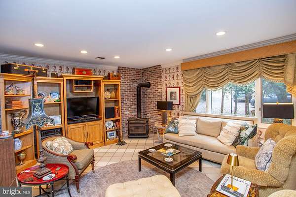 - Breakfast Area, Carpet, Chair Railings, Crown Moldings, Eat-In Kitchen, Formal/Separate Dining Room, Jetted Tub Bathroom, Pantry, Skylight(s), Stall Shower Bathroom, Traditional Floor Plan, Tub Shower Bathroom, Walk-In Closet(s), Wood Floors, Wood Stove