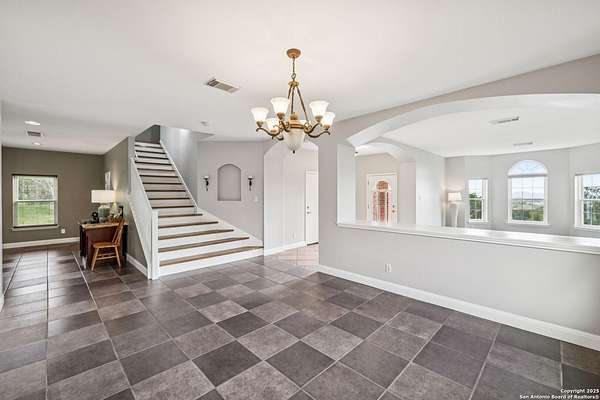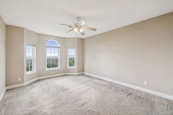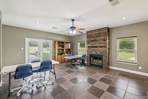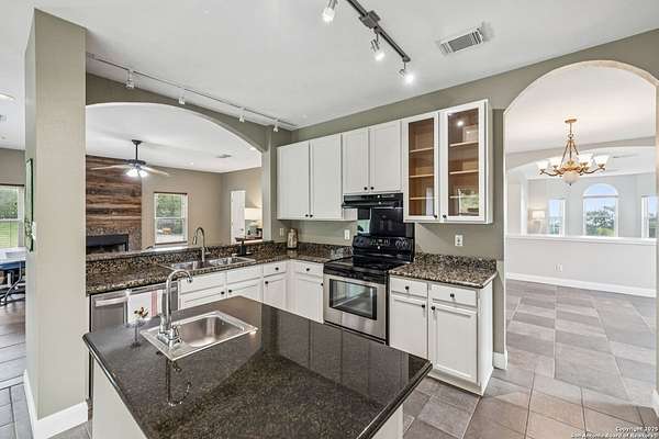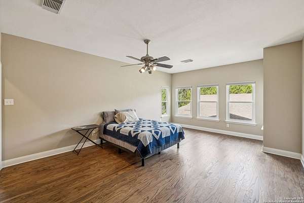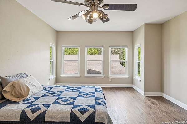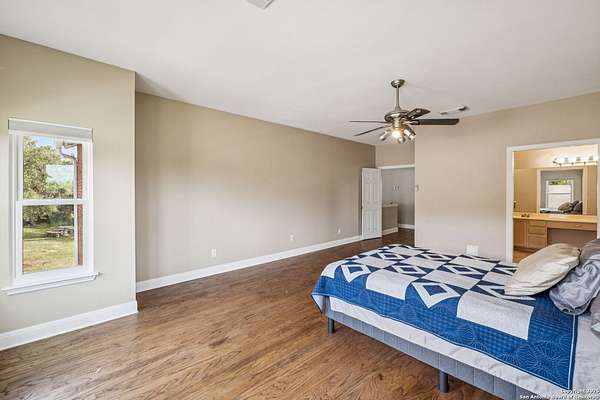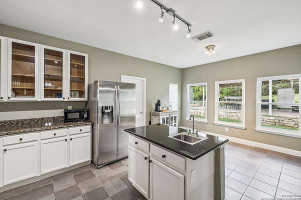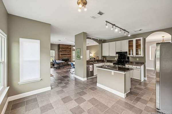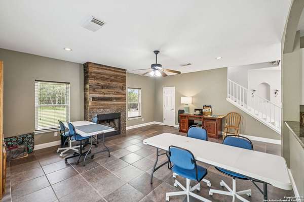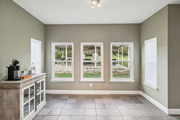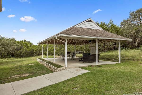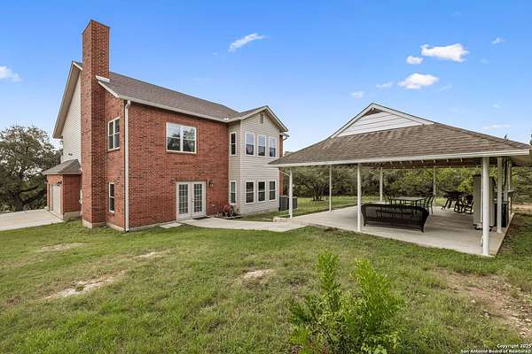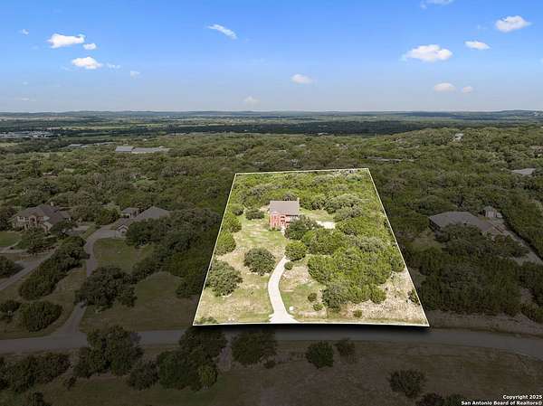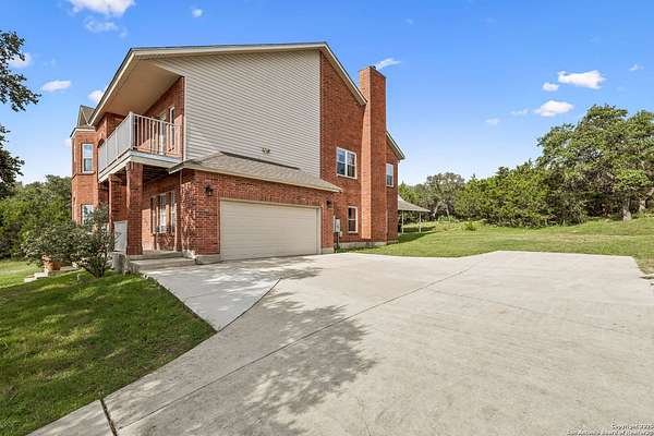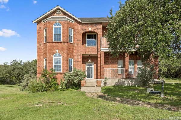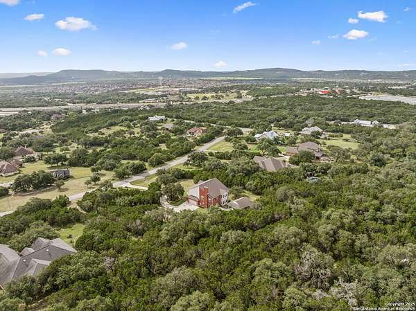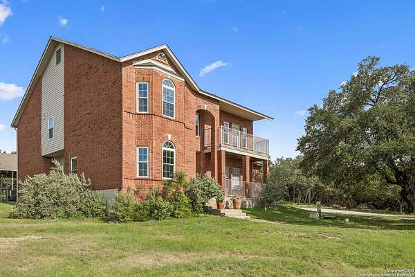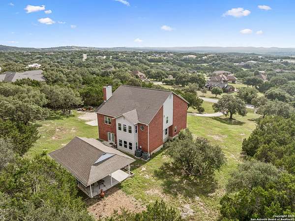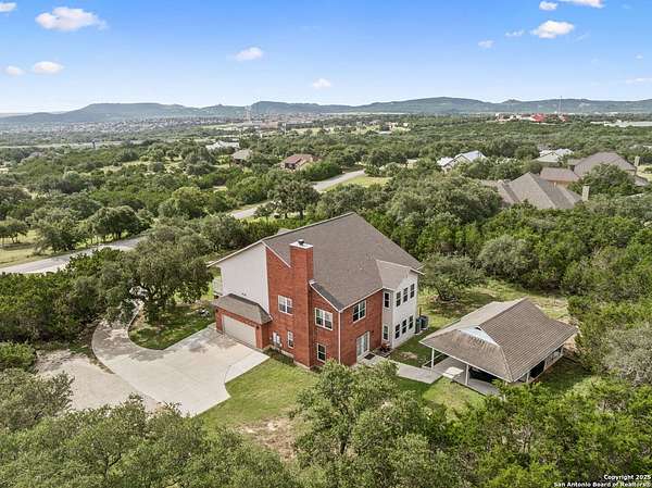 STUNNING VIEWS ON NEARLY 2 ACRES!! Situated on an expansive lot with 10-mile views and easy access to 281, this exceptional home is built for both comfort and entertaining. Boasting multiple living areas-including a spacious Texas-sized game room with custom cabinetry-there's room for everyone to spread out and enjoy. The chef-inspired kitchen features granite countertops, prep sink at the island, a massive pantry, and elegant glass door display cabinetry. Energy efficiency is top of mind with double-pane vinyl windows and a radiant barrier roof. The family room's Texas-style fireplace adds cozy charm, while recessed lighting and updated fixtures bring a modern touch. Upstairs, glistening wood floors lead you to generously sized secondary bedrooms, including one with access to a private deck and sweeping views. The luxurious owner's suite is flooded with natural light and features a beautifully tiled shower. Outside, a 30x20 pavilion is ideal for gatherings, offering the ultimate space for outdoor entertaining. A paved driveway provides ample parking with extra room for RV and boat parking, making this home a rare blend of style, function, and freedom. HVAC and roof replaced in 2020. ALL new vinyl windows 2024. SEE THIS ONE TODAY!!