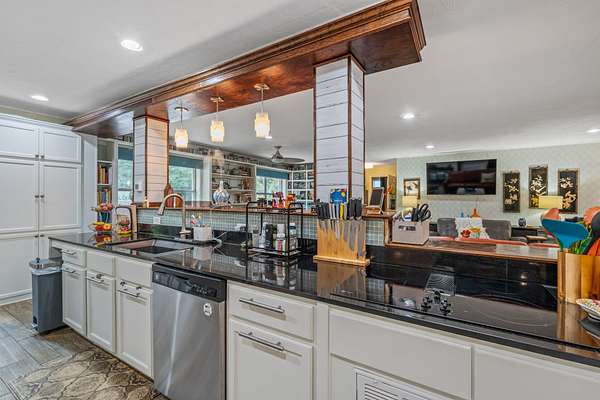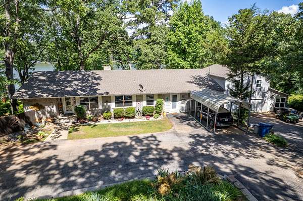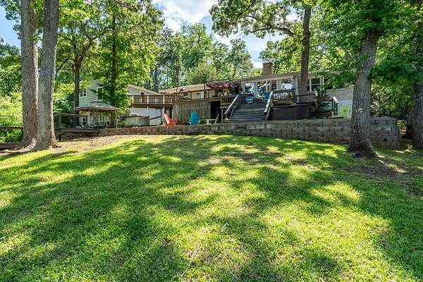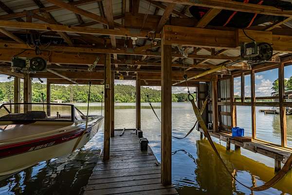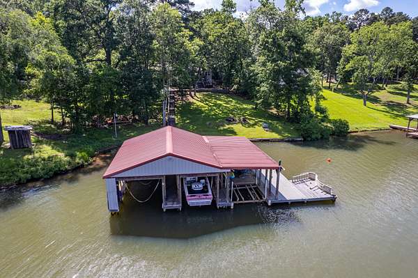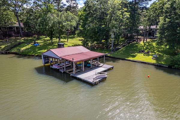 3/2/2 w/workshop area, waterfront, one story, 2148 SF brick home with separate, 720 SF Apt or Mother-in-law residence above the garage, AND a 288 SF Bungalow downstairs, next to the garage to handle all your guests and recreational needs on 1.781 acres per brand new May, 2025 survey. (Appraisal on 5-13-2025 based on previous Cherokee CAD 1.37 acres was $665,000). Apt and Bungalow added in 2011 with Hardi-board siding. 2 stall boathouse with 2 jet ski lifts and storage room built in 2007 and added on in 2023. Double decker upper deck added in Summer of 2024 and upper concrete bulkhead nearer to home added in 2016. Newer 3-4 year old, 30 year composition roofs on main home, garage apt, and Bungalow. Asphalt circle drive. RV parking/storage area. Porcelain tile, wood look flooring in main residence. Master bath remodeled in 2008 with new sinks added in 2024. Guest bath remodeled. Built-in oven and microwave are 3 years old. Electric cooktop. Refrigerator, 4 years old. Wood portion of countertops added in 2008. Farmhouse sink. Tankless, gas, HW heaters for home and apt/bungalow. Pex piping added in 2013. Electrical updated with newer panel box per owner. Storage room/tornado room under home with access from back of home and inside the residence. Let your summer fun start today! Call today to schedule your showing of this wonderful lake retreat. The information contained herein is deemed reliable but is not warrantied or guaranteed by the Broker or Seller. The Broker has no liability for typographical errors, misprints, nor for misinformation that may have been given us. All property is subject to change and buyer agent must be identified on first contact with Broker and must accompany the Buyer on showings to receive full fee participation which will be at the sole discretion of G2 Outdoors LLC