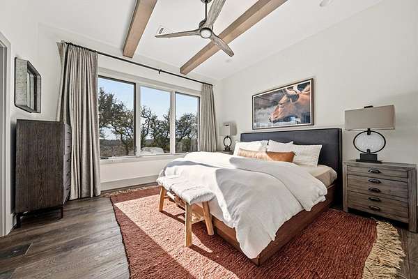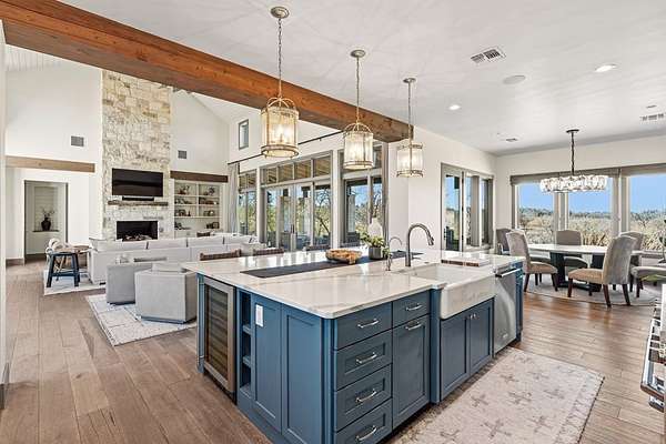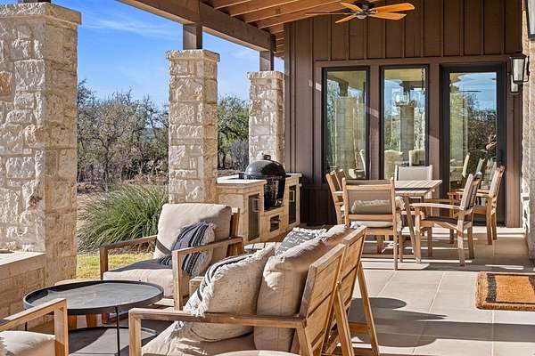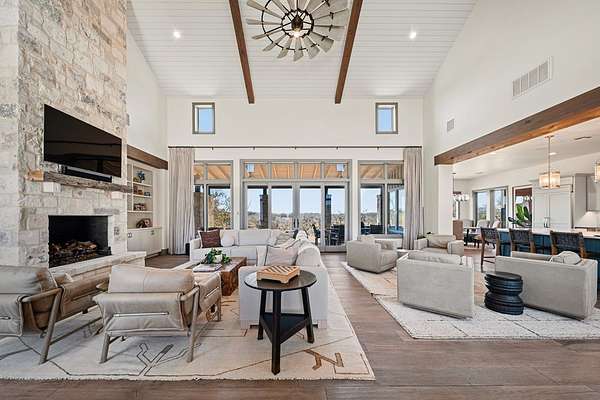 Perched at the highest point of Boot Ranch, 3024 Boot Ranch Circle commands one of the community's most coveted positions — a hilltop setting where eastward mornings greet you with stunning Texas sunrises and evenings close with sweeping western sunsets. A constant gentle breeze drifts across this elevated retreat, and with no homes behind you, the privacy is absolute. Set on 6.85 acres — one of the largest properties in all of Boot Ranch — this is a rare chance to own a low-traffic, nature-rich sanctuary unlike anything else available in the community. A natural spring on the property adds to its distinctive character, making this truly one of a kind. The Residence The 4,273-square-foot main residence offers 4 bedrooms and 5.5 bathrooms, thoughtfully designed for both effortless daily living and elegant entertaining on a grand scale. Vaulted ceilings with exposed beams, expansive windows, and warm natural materials create light-filled interiors that flow seamlessly to the outdoors. The open-concept living areas anchor the home around a striking stone fireplace, flowing into a chef's kitchen and inviting dining spaces — perfect for hosting gatherings large or small. The primary suite is a true private sanctuary, featuring separate his-and-her bathrooms with spa-like comfort, peaceful views, and direct outdoor access. Each additional bedroom includes an en-suite bath, ensuring privacy and comfort for family and guests alike. The Casita Complementing the main home is a 956-square-foot casita with 2 bedrooms, 2 bathrooms, a living room, and a kitchenette — ideal for extended family, guests, or a private home office. Together, the property offers 6 bedrooms total, making it one of only a handful of homes of this size available at Boot Ranch. The Setting Additional features include a 2-car plus 1-cart garage and generous outdoor living spaces designed for entertaining under the Texas sky. Whether you're watching the sunrise over the Hill Country, relaxing in the breeze at the day's end, or hosting friends around the fireplace, this property delivers a living experience that is simply unmatched. A remarkable blend of luxury, privacy, acreage, and timeless Hill Country design — this is Boot Ranch living at its finest. A Boot Ranch Club Membership is required with each property purchase; annual Club dues apply. The Boot Ranch multi-generational membership extends privileges to parents, grandparents, children, adult children, grandchildren, and all their spouses — so your whole family can enjoy exclusive membership benefits at no additional dues