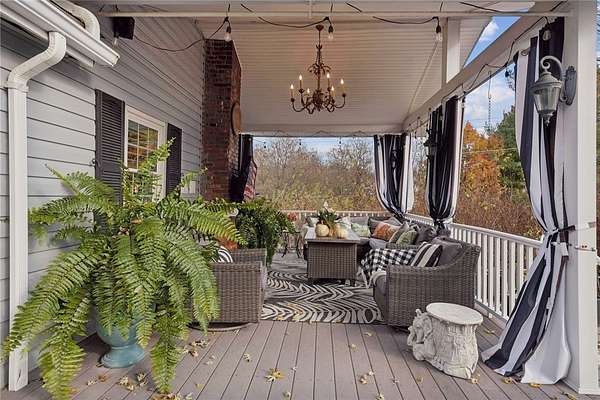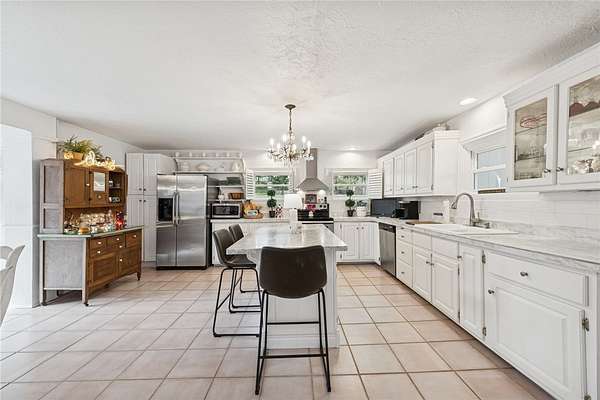 - Fireplace, Kitchen Island, Pantry, Window Treatments