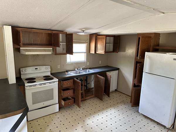 1210 square foot single wide mobile home on 2.56 acres. 3 bedroom 2 bath. Needs new flooring throughout. The structure does appear to be sound and fixable. Nothing on ceilings indicating roof leak. Walls could use a fresh coat of paint. Carpet does need replaced. Does not appear to be animal or pet stains. No evidence of animals. Home could be good investment opportunity or live here while you build on front lot. This listing includes the 1.56 acres on deed and 1 acre adjoining to Goodrich rd. Small stall barn, shed and 2 car carport. You're not gonna find many livable structures in this price range. Make your offer today to own 2.56 acres in the highly desirable community of Nunnelly Tn.