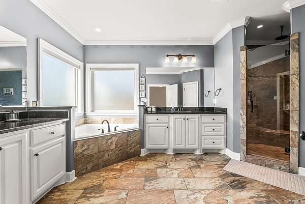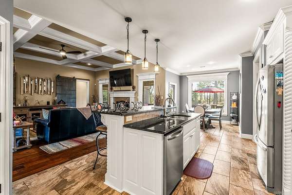 This is a wonderful 4 Bed 3 Bath + Bonus on 3 quiet acres in the gated Westcliffe of WLR. Inside, you're welcomed with an impressive foyer with the formal dining & coffered ceiling living that has the wood burning fire. Your kitchen highlights the tall granite breakfast island, sliding corbel built-ins, walk-in pantry, and breakfast area that gives access your immaculate covered patio & private deck, overlooking your flat and fully fenced yard Privately set apart is your real wood coffered primary suite with the dual vanities, jetted tub, walk-in seated travertine rain shower, and walk-in closet. Through the sliding barn doors is your bonus / media room with the surround sound built-in, as well as the additional 3 guest beds & 2 baths, Your 3 car side entry garage access has the large laundry with the locker built-ins.