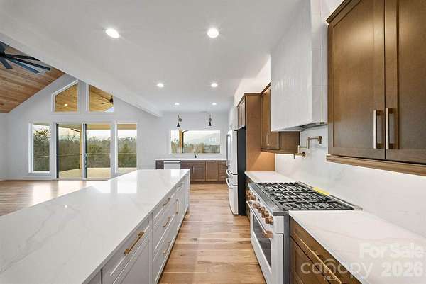 Experience the pinnacle of luxury mountain living in this brand-new 4-bedroom, 4.5-bath custom home, thoughtfully designed and impeccably built on 4 private acres in the heart of Western North Carolina. Perfectly positioned to capture long-range, unobstructed mountain views of Mount Mitchell and the Black Mountains, this home offers a rare blend of modern sophistication, structural excellence, and timeless natural beauty just minutes from downtown Old Fort. From the moment you arrive, the quality of construction is evident. The home is anchored by a poured concrete block foundation, providing superior durability and peace of mind, and finished with low-maintenance Hardie(R) board siding, ideal for mountain conditions. A two-car main-level garage offers everyday convenience, while a separate one-car lower-level garage provides additional storage or flexibility for outdoor gear, workshop space, or owner use--an ideal feature for a short-term rental setup. Inside, refined design meets intelligent living. A beautifully lighted stairway creates both ambiance and safety, while expansive windows flood the home with natural light and frame breathtaking mountain vistas from multiple levels. The chef's kitchen with instant hot water pot filler is a true centerpiece, featuring undercabinet lighting, integrated under-cabinet electrical outlets, and swing-out appliance shelving that keeps countertops clean and functional--perfect for entertaining or accommodating guests. Subtle Eve lighting throughout the home enhances mood and efficiency, while installed security cameras add a layer of smart-home convenience and peace of mind. Each of the four bedrooms is generously sized and thoughtfully laid out, with spa-inspired en-suite bathrooms that deliver comfort and privacy. The additional half bath adds functionality for gatherings and guest use. Whether hosting friends, family, or visitors, the layout flows effortlessly while maintaining private retreats throughout the home. This property is exceptionally well-suited as a high-performing Airbnb or luxury short-term rental. The combination of dramatic views, modern amenities, multiple garage spaces, and proximity to outdoor attractions makes it highly desirable for travelers seeking an upscale mountain escape. Located just minutes from the vibrant charm of Old Fort, owners and guests alike will enjoy quick access to some of Western North Carolina's most sought-after attractions, including Pisgah National Forest, Catawba Falls, the Fonta Flora Trail, world-class hiking and mountain biking, trout fishing, and scenic drives along the Blue Ridge foothills. Old Fort's revitalized downtown offers local breweries, restaurants, art, and community events, while Asheville is a short 25 minute drive away for dining, shopping, and entertainment. Whether envisioned as a luxury primary residence, mountain retreat, or income-producing vacation rental, this exceptional new-construction home delivers iconic views, modern comfort, and long-term value--a rare opportunity to own a standout property in one of North Carolina's fastest-growing mountain destinations.