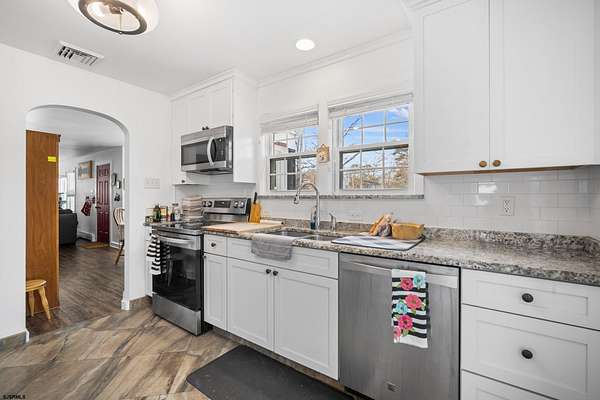 Step into a fully renovated ranch home sitting on nearly 1.75 acres--a setup you don't come across often. From the moment you walk in, the natural light and open feel set the tone. The sunporch is a standout, and the curved archways, new windows, custom blinds, luxury vinyl floors, and porcelain tile tie everything together with a modern, polished look. The kitchen has been completely upgraded with stainless steel appliances, granite counters, and custom cabinetry--ready for everyday use or someone who loves to cook. Both bedrooms offer great closet space and plenty of sunlight, and the two full bathrooms were redone with a clean, spa-style finish. The finished basement is massive and adds a ton of usable space--perfect for a home gym, an additional sleeping area, or an entertainment setup. It includes a large laundry room, ample storage, heating, A/C. Outside, the property shines just as much. There's more than enough room to garden, host gatherings, add a pool, or simply enjoy the privacy and wooded surroundings. The U-shaped driveway provides easy access and plenty of parking. The detached concrete-block two-car garage is a major bonus--heated, equipped with a sink (shallow well), and featuring an auto pit with steel stairs for anyone who's into cars or hands-on projects. Location puts you close to shopping, Shore points, and the FAA Tech Center. The sale includes the primary parcel and the additional wooded lot at Franklin Ave & Spruce, giving you even more land and opportunity. Easy to show, and absolutely worth seeing--properties like this don't stick around.