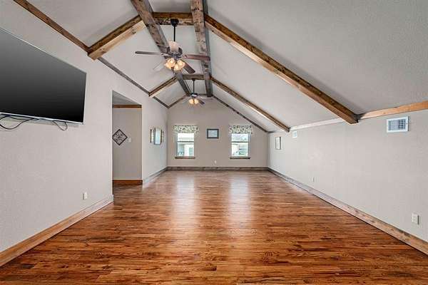 Nestled in a picturesque country setting with gently rolling terrain & wide-open pastures, this exceptional custom-built home located on 1.58 acres offers the perfect blend of rustic charm & refined comfort--no HOA hassles. Thoughtfully designed with quality finishes throughout, the interior features striking wood beams, extensive wood flooring, & a stunning stone-enhanced fireplace with remote-controlled propane flame logs. The gourmet kitchen & baths showcase granite countertops & vanities, stainless steel appliances, & knotty alder cabinetry. Energy-efficient upgrades include foam insulation & a tankless hot water heater. Spacious bedrooms provide comfort & flexibility, while the second level offers an ideal mother-in-law or guest retreat with a generous bedroom, full bath, wet bar with island, sink, dishwasher, & abundant closet storage. Outdoors, a long concrete drive leads to a 24' x 30' metal outbuilding ideal for hobbies, storage, or workspace. An extended pergola offers a wonderful space for outdoor seating & entertaining. Additional features include a fully sprinklered yard & recently replaced roof shingles, recent replaced HVAC condensing unit & septic pump aerator. Enjoy peaceful country living with room to breathe, relax, & create lasting memories in this truly special property.