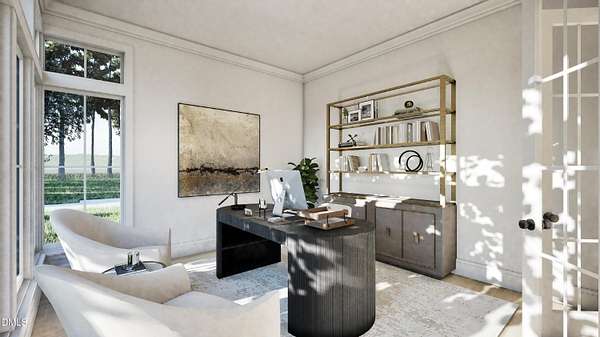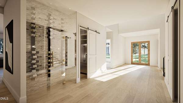 Experience the ultimate blend of luxury, privacy, and freedom on 3.09 serene acres in North Raleigh, where no HOA means your vision is your only limit. This to-be-built custom estate spans an impressive 5,489 square feet of masterfully designed living space, thoughtfully crafted for both comfort and sophistication. Step into an open-concept floor plan anchored by a dream kitchen with an elegant scullery and statement wine wall, perfect for entertaining or quiet evenings at home. The first-floor primary suite is a true retreat with its own 230+ sq ft walk-in closet and private laundry. A first-floor guest suite and dedicated office add convenience and flexibility. Upstairs, you'll find three spacious bedrooms, a studio, recreation room, and a media room for endless possibilities. Outside, enjoy year-round living on the covered porch with retractable screens, complete with an outdoor fireplace and built-in kitchen overlooking your wooded acreage. A customizable barn adds even more potential, whether for hobbies, horses, or storage, it's your space to define. Set among towering trees in a prime North Raleigh location, this property offers rare seclusion just minutes from everything. A remarkable opportunity for your forever home, where luxury, land, and lifestyle are perfectly aligned.