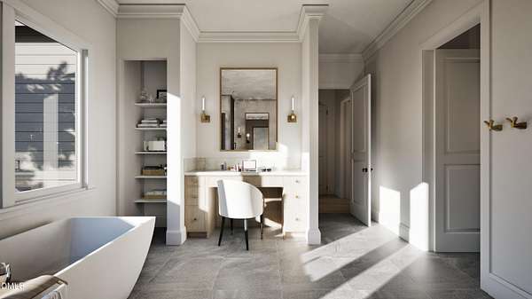 - Built-In Features, Butler's Pantry, Crown Molding, Double Vanity, Entrance Foyer, High Ceilings, Kitchen Island, Pantry, Primary Downstairs, Quartz Counters, Separate Shower, Walk-In Closet(s), Walk-In Shower, Water Closet