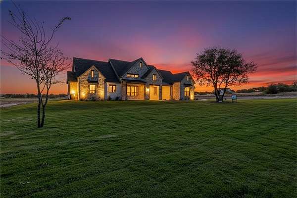 Welcome to Summit Ranch! Cross Custom Homes pairs timeless architecture with thoughtful livability. A stone-framed entry opens to sunlit rooms, engineered hardwood flooring throughout, extensive trim accents that continues from the kitchen to every space in the home. In the chef's kitchen, paneled appliances and deep-reach cabinetry keep the lines clean, while a 6-burner gas cooktop with griddle and pot filler make every day cooking effortless. Beside the paneled refrigerator, a discreet door reveals the butler's pantry--a cozy, highly functional work zone with added storage, microwave, and space for an additional freezer. Soft-close cabinetry throughout underscores the quiet quality of the build. The great room is anchored by a floor-to-ceiling wood accented fireplace, detailed trim work, and statement lighting. A private study with custom built-ins and curated hardware adds old-world character. This home is crafted for quite living and is set on two Acres with endless options.