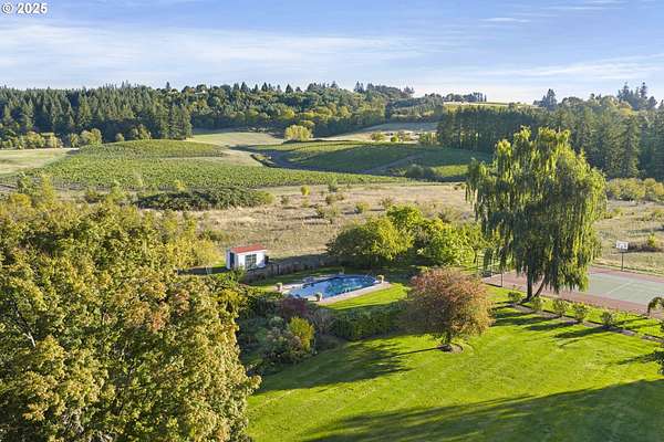 A landmark estate at the gateway to Oregon's Willamette Valley wine country, Springbrook Hazelnut Farm blends historic elegance, agricultural beauty, and modern opportunity. Established in 1912 and listed on the National Register of Historic Places, this storied 21.5+/- acre property features a grand 6,782+/- sqft craftsman / bungalow residence with seven bedrooms, three full and three half baths, a charming inground pool, tennis court, gardens and exquisite period details throughout.The estate includes three contributing historic structures: a 913 sqft renovated carriage house with apartment and workshop (active as a by-month Airbnb), a charming 662 sqft caretaker's cottage, and a 5,000+/- sq ft timber-framed barn currently leased to the acclaimed Wolves & People Farmhouse Brewery (brewery business excluded; lease discussions optional).Surrounded by orchards, gardens, and a pond alive with wildlife, the setting reflects over a century of Oregon's agricultural story. EF-20 zoning and the property's established hospitality history may allow for multiple pathways like an owner-occupied bed & breakfast, farm-to-table retreat, or agri-business expansion within the Springbrook Corridor. Just minutes from Rex Hill, The Allison Inn & Spa, and downtown Newberg, the location merges rural tranquility with exceptional accessibility.Springbrook Hazelnut Farm has long been a cornerstone of Oregon's food and wine culture, home to early cooperages, pioneering wineries, and now a celebrated farmhouse brewery. Its history, scale, and zoning create a rare chance to own an estate that is both heritage and horizon, a place where land, craft, and the future of Oregon's wine country come beautifully together. Ideally located within 15 miles of the Aurora and McMinnville FBOs and about 30 miles from Portland International Airport. At Springbrook Hazelnut Farm, the address is the story, and the story is still unfolding.