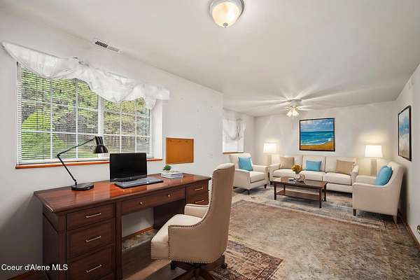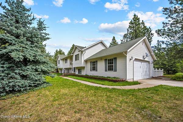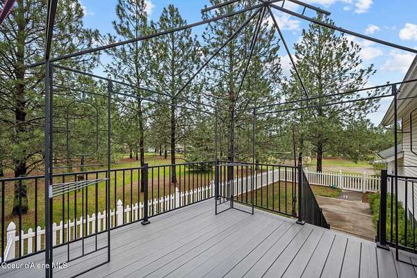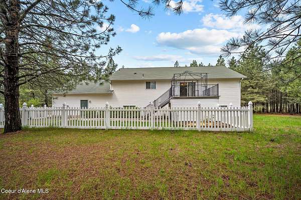 Est $3,806/moNicely thinned treed acreage. FLAT. Pretty home well maintained and fenced. Area off elevated deck has fencing for small dog.
