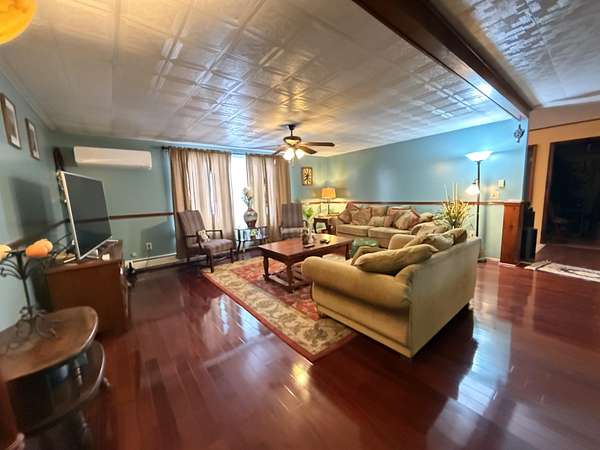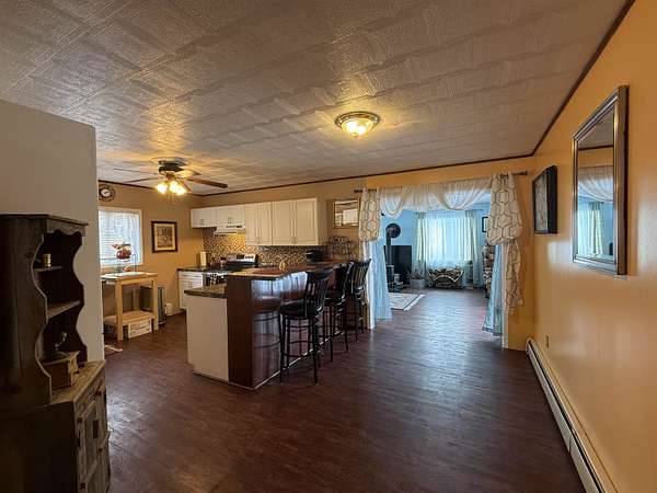 Welcome to this fantastic, family sized 4-bedroom, 2 1/2-bathroom, meticulously maintained, home with nearly 3,000 sq. feet of living space to spread out in, situated on a manicured and landscaped, partially fenced,1.85 lot, with an attached pull-in basement garage. 2 paved driveways, and a massive, 2-story barn. Key features include: The 2138 sq. ft. main floor with an oversized welcoming foyer with tile floors that flows to the modern, recently updated kitchen featuring attractive, white wood cabinets, newer wood laminate floor, plenty of counter space, tile backsplash, a breakfast bar and stainless-steel appliance package conveys. The bright, natural light filled formal dining room has a cozy wood burning stove, large windows to view nature and the sliding door that is your gateway to the expansive, newly refreshed back deck and partially fenced yard. The living room is very generously sized, and it shares gleaming cherry manufactured hardwood floors with hallway. There are 4 good sized bedrooms, one has the 1/2-bathroom ensuite, and the smallest bedroom makes up in size with a spacious walk-in closet. The finished walk-out basement tries to steal the show with a desirable recreation room, family room, wet bar complete with its own stove and refrigerator. a 3/4 bathroom with shower and storage room. The covered front deck offers breathtaking panoramic views. The barn is massive and while it has 3 doors it can hold A LOT of cars, there's workshop and huge upstairs for whatever your imagination can decide... There is a furnace with runs, but the seller has never used it and can't guarantee it works. The pride in ownership is evident with the 3-month-old boiler, 3-year-old metal roof, new laminate flooring upstairs and down, new paint throughout, freshly sealed driveways, refreshed decks, new sidewalks...to name a few. Centrally located between Massena and Malone, NY, just minutes from Salmon River School. Akwesasne Mohawk Reservation and the Canadian border. The full market value tax assessment is $246,290 equalized at 64% making the tax assessment $152,700,00. This property is priced to sell...qualified buyers are encouraged to schedule a showing right away!!
