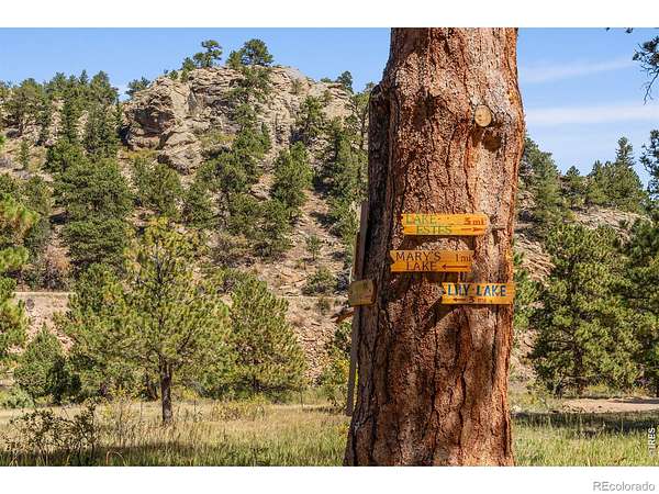 From Estes Park, dive South on Highway 7. Turn left into Grey Fox Estates. Turn left onto Green Pine Court. House is at the end of the road.