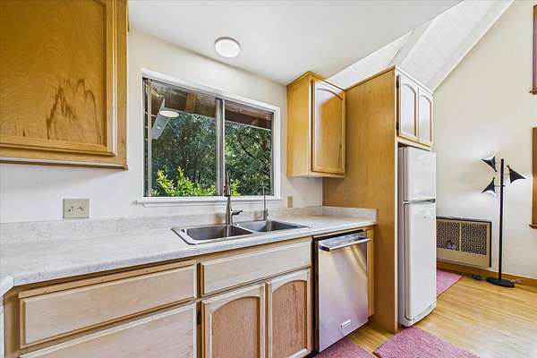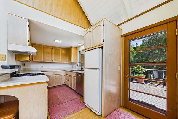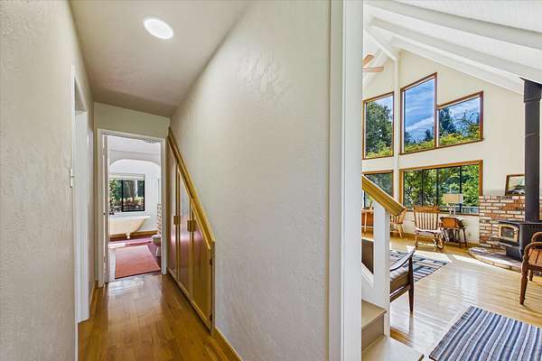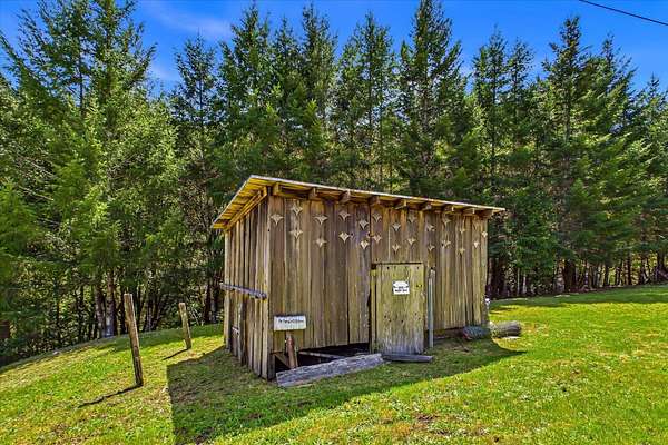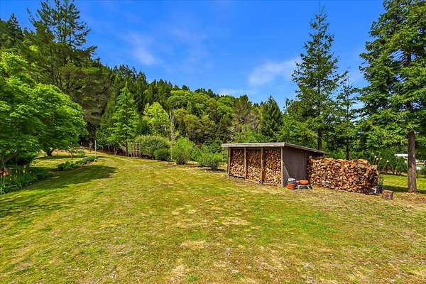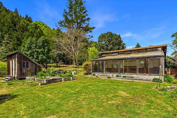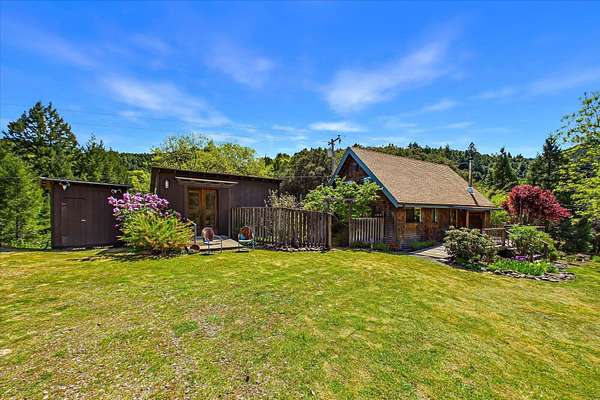 Perfect location, abundant water & meticulously maintained 14+/- acres. Five flat acres of pasture surround the home, two of which are fully fenced with established gardens and multiple fruit trees; cherry, apple, pear, walnut, asparagus and raspberry beds. Substantial greenhouse with full perimeter foundation extends the growing season. The home is a two-story A-frame with custom features, large windows, and skylights that bring in abundant natural light. Detached 285 sq. ft. studio & laundry room with separate entrances expand the livable space. Private yet only 20 minutes to the ocean, King Range National Conservation Area, and 25 minutes to town. The property borders Bureau of Land Management and is walking distance to Whitethorn Construction, J Cafe, post office and the Mattole River.