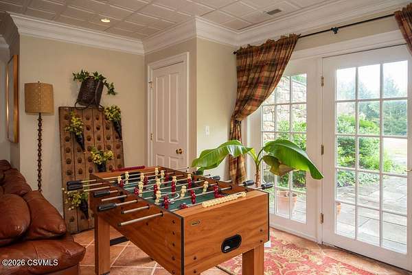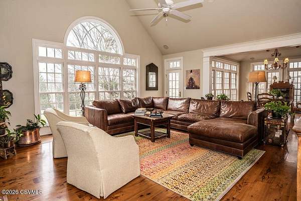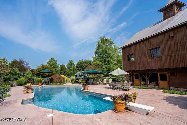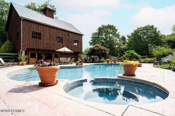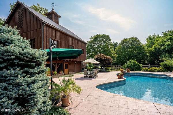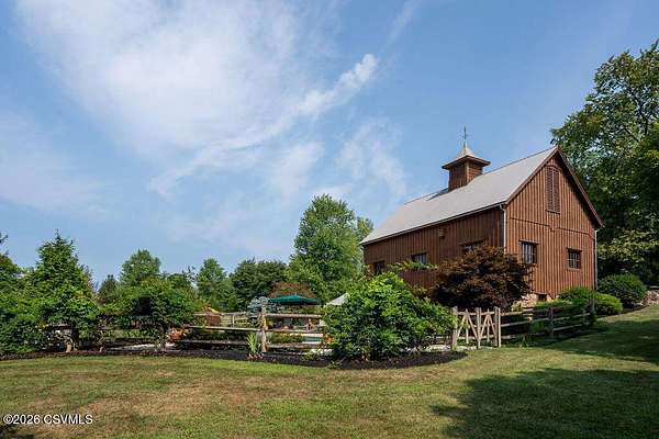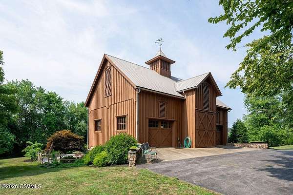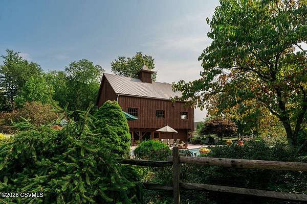 GORGEOUS Lewisburg LUXURY home perfectly located on 3.96 acres across from Bucknell Golf Course.This exquisite 5 bedroom home offers elegance and charm surrounded by mature trees, pond,beautiful barn,and 3 car garage.Step inside to stunning architecture that flows seamlessly throughout the home.The formal living room, study, family room, basement, and primary suite feature wood burning/gas fireplaces.Grand windows with lots of sun and natural light,GOURMET kitchen,dining area,and spacious family room opens to terrace and patio areas, perfect for morning coffee. Amazing lower level with entertainment areas, bar, wine cellar, gym,and spa like bathroom with sauna.Concrete salt water in-ground pool, custom barn/pool house, with bathroom,kitchen and living area.And SO much more...A must See!!!