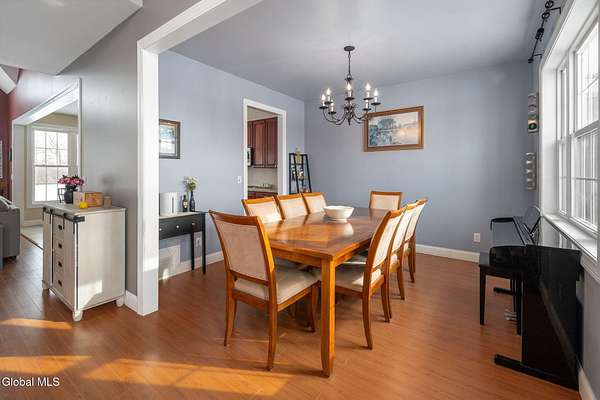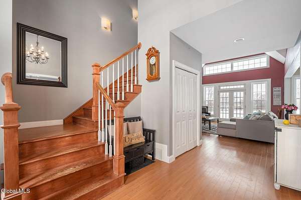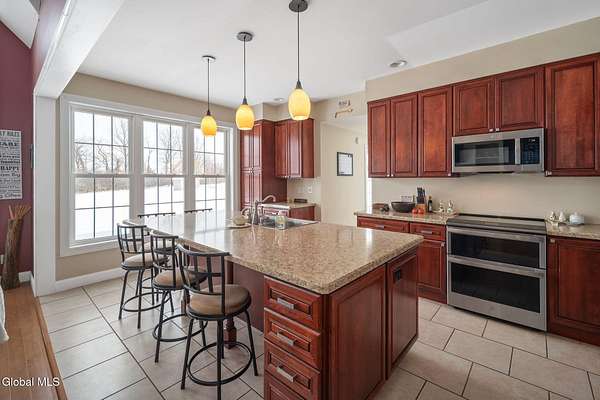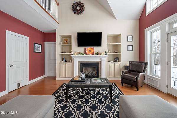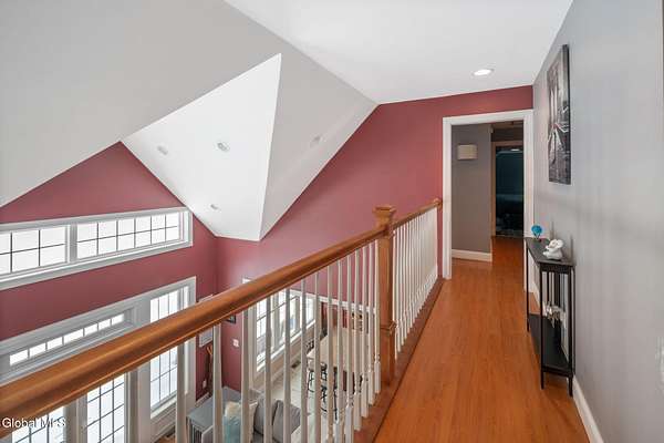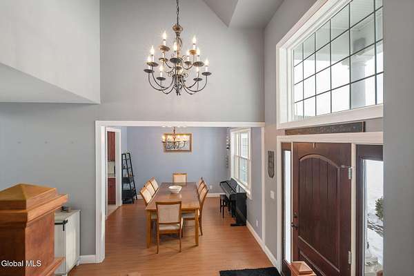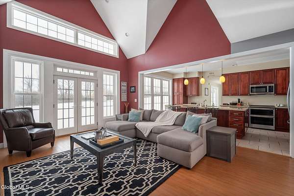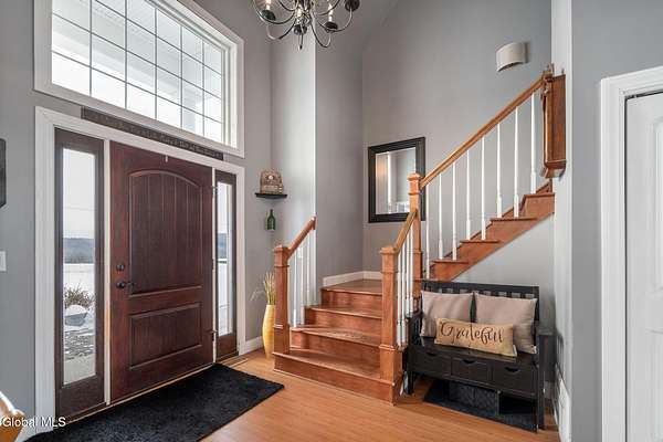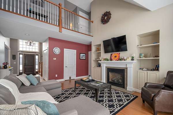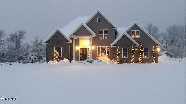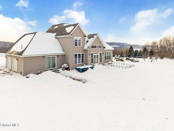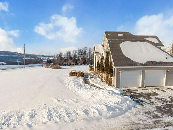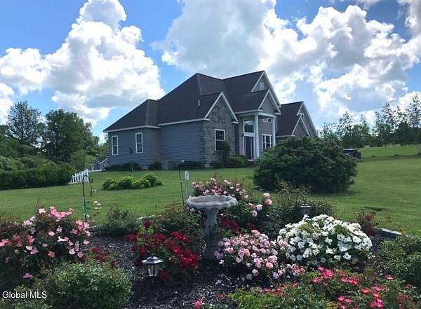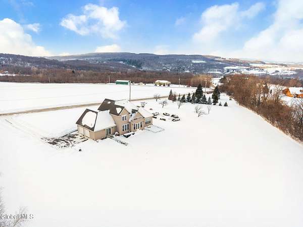 A grand entrance welcomes you into this beautiful contemporary home, where soaring cathedral ceilings and a warm gas fireplace create an inviting living space made for gathering. The open layout allows the kitchen to flow effortlessly into the living room - perfect for entertaining or simply relaxing and enjoying the view. Upstairs, a loft overlooks the main living area, adding architectural charm and a sense of openness. With 3 bedrooms, 2.5 baths, the primary bedroom features a large bathroom and walk-in closet, offering a comfortable private retreat. An additional 2nd floor bonus room offers flexible space for a family room, home office, or workout area. Set on 3.1 scenic acres, in the Town of Sharon, you'll enjoy valley views, a peaceful patio, and a lovely rose garden that adds color and character to the outdoor setting. The attached 2-car garage and easy access to Highway Rte 20, I-90, and within 35 mins to Cooperstown make this home as convenient as it is picturesque. Modern comfort and natural beauty. The best of both worlds.