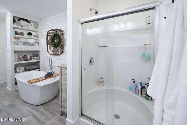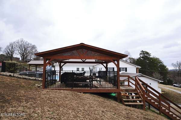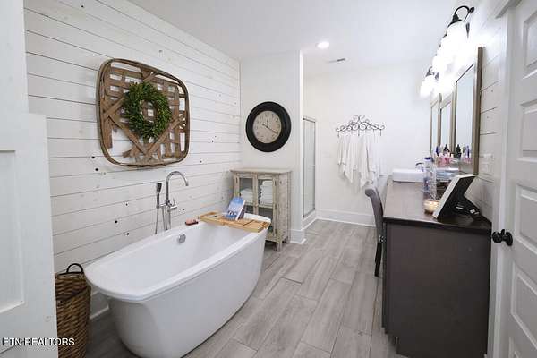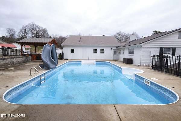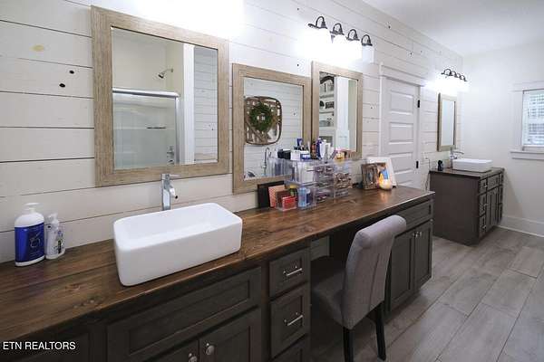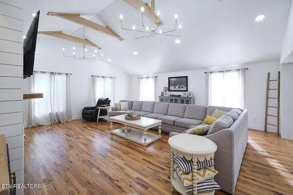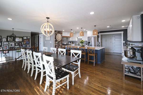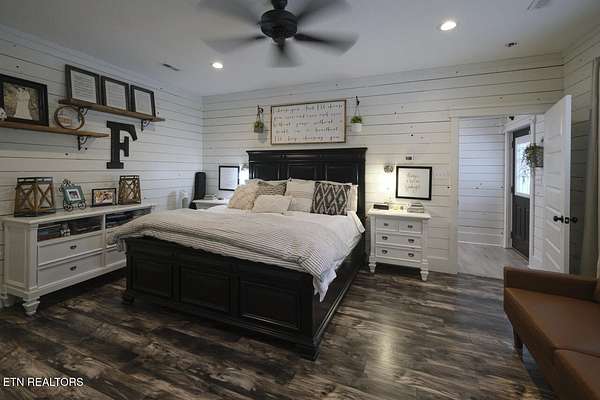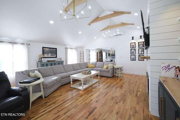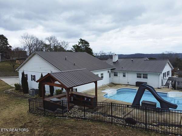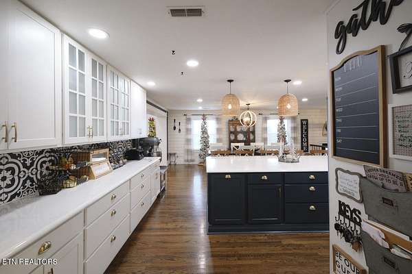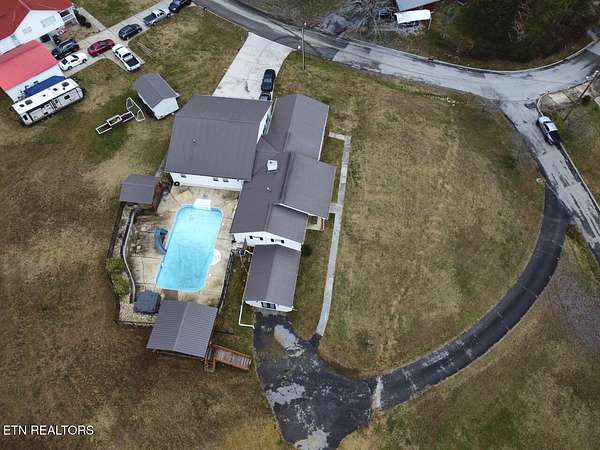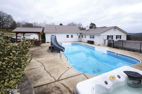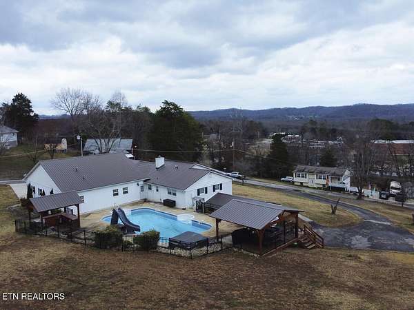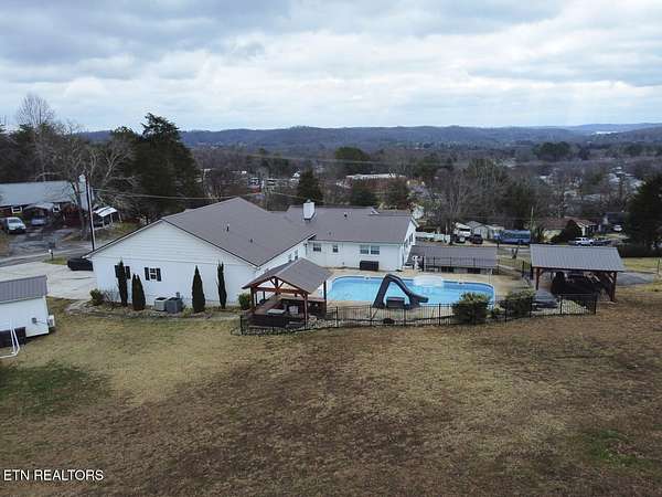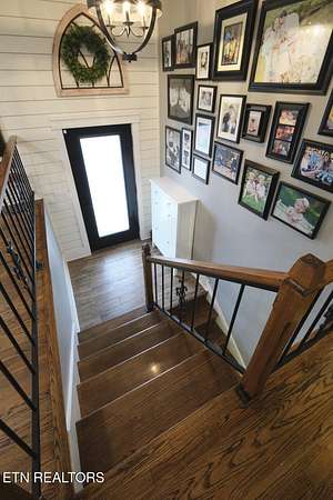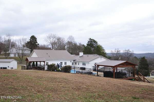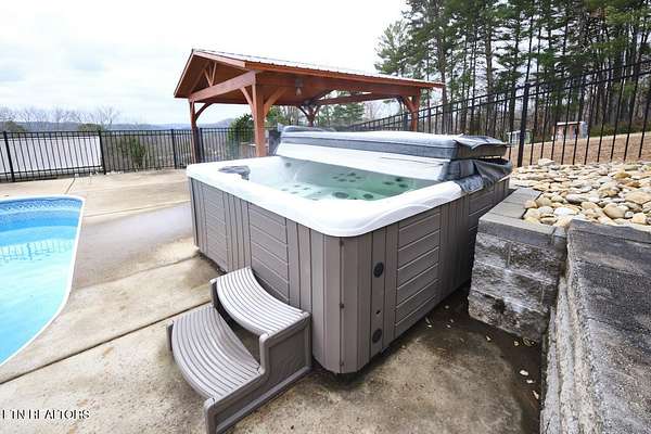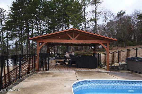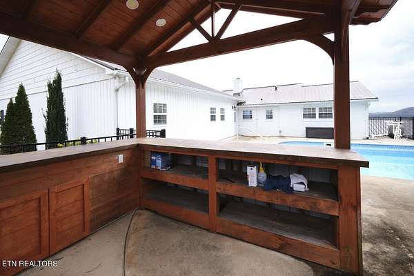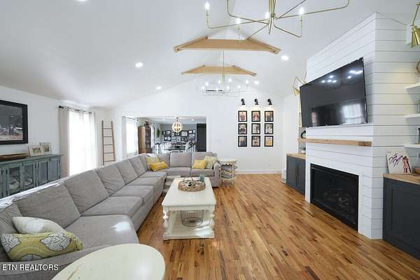 Discover your dream home on this expansive 3-acre lot, offering breathtaking mountain views and a serene wooded backdrop. This charming 4-bedroom, 3.5-bathroom farmhouse-style residence is nestled in a vibrant lakeside community, just minutes from top-rated schools. Enjoy the best of both worlds with easy access to local amenities including parks, a dog park, walking trails, grocery stores, banks, and nail salons, all within a 5-minute drive. Step inside to find hardwood floors throughout, leading into an open, inviting layout. The heart of this home is the chef's kitchen, boasting a large island perfect for gathering, custom cabinetry, stainless steel appliances, and a farmhouse sink. The living area is warmed by two gas fireplaces, one in the main living room with built-in cabinets, and another in the lower level living area. The master bedroom is a retreat with its own farmhouse style, featuring a soaking tub and a walk-in shower. Additional highlights include an inground pool, hot tub, and an expansive outdoor space with a covered bar area, creating an ideal setting for entertainment or relaxation. This home has been thoughtfully upgraded with all interior features reflecting a modern farmhouse aesthetic, ensuring both style and comfort. Unique to this property is the large yard that offers privacy and space, alongside community benefits without direct lake access. Whether it's the scenic views, the proximity to community facilities, or the luxurious indoor and outdoor features, this property promises a lifestyle of tranquility and convenience.