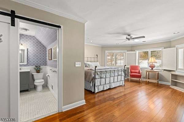 Crimson King Farm is a rare gem located on coveted Mendham Road on Bernardsville Mountain. Spanning over 8 acres, the farmette offers privacy and convenience, ideal for both peaceful living and rural pursuits. The property features a picturesque custom-built home with a stunning first floor primary suite and beautifully updated kitchen and baths, providing modern comfort while embracing the tranquility of the surrounding countryside. For those with equestrian or agricultural interests, the grounds are equipped with a 4-stall barn, two runout sheds, and two expansive fenced pastures, providing ample space for animals or farming endeavors. A detached barn/garage offers extra storage for equipment, vehicles, or a workshop. The meticulously landscaped grounds include lush perennial gardens, a greenhouse, koi pond, and garden cabana, which is fully equipped with a kitchen and a full bath making it an excellent space for an office, studio, or retreat. The home benefits from a new 5-bedroom septic system, an automatic natural gas generator, water softening and filtration systems, a security system and an irrigation system, ensuring efficiency and peace of mind. Despite its serene setting, the property is just minutes away from shopping, fine dining, world-class golf courses, top-rated schools, and major highways. Crimson King Farm is truly a haven that allows you to enjoy country living while remaining connected to everything you need.