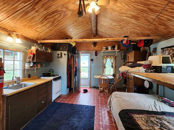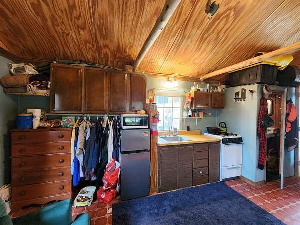 Looking for the perfect up-north escape? This rustic log cabin on 1.24 acres is the ideal recreational retreat! Enjoy a simple, open-concept layout with combined kitchen, living, and sleeping space, plus a separate full bath. The cabin comes mostly furnished--including the taller refrigerator, stove, microwave, furniture, 100lb propane cylinder, and two large sheds (10x10 & 12x14). Exclusions: smaller refrigerator, curtain above bunk beds, outdoor washer, and birdhouse. For a little more, the seller will include two quads, two mowers, and a rowboat (no trailer)--everything you need for outdoor fun! Recent 2024 updates include a new water heater, well point, pump, pressure tank, septic and drain field, and vented wall furnace. Just minutes from state land, ORV trails, and several all-sports lakes, this cabin is your gateway to fishing, riding, boating, and year-round adventure!