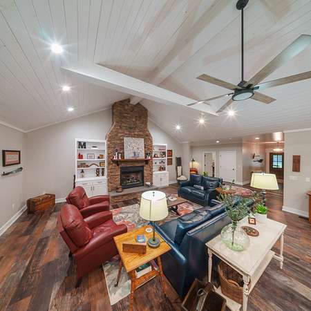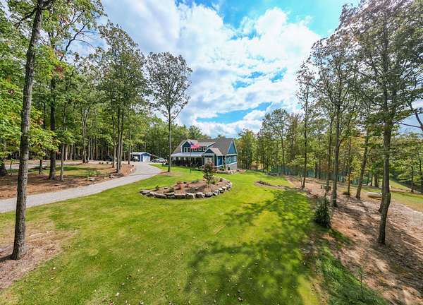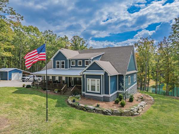 Experience refined living in this 5,000+ sq. ft. estate set on just over eight acres. With access to a lake directly behind the home and two smaller stocked ponds on the property, you will be ready to experience the outdoor living this home offers. This remarkable estate offers the perfect combination of luxury, comfort, and natural beauty, creating a true oasis of peace and privacy with breathtaking bluff views. Inside, you will find four spacious bedrooms, four and a half baths, and multiple flex spaces ideal for a home office, gym, or media room. The large, open kitchen is perfect for entertaining and hosting holiday gatherings, offering abundant counter space and room for everyone to gather. Enjoy two fireplaces- one gas and one wood-burning-that add warmth and character throughout the home. Designed for both comfort and convenience, the property features four HVAC systems, high-speed internet, and large windows that flood the interior with natural light while framing stunning outdoor views. Whether relaxing by the lake, working remotely, or hosting friends and family, this exceptional property offers luxury living in a peaceful oasis that you will love to call home!!
