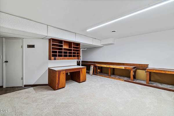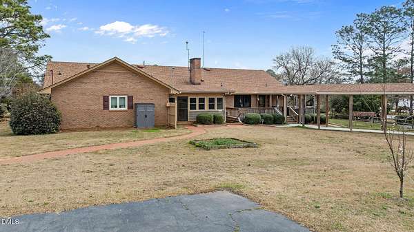 Incredible opportunity to own over 5,300sq ft of living space on 1.7 acres in the heart of downtown Benson! This truly unique property features a fully finished basement and attic, providing incredible flexibility for multi-generational living, entertaining, or hobby space.The main level welcomes you with an entry foyer, formal dining room, and expansive living room with beautiful bay windows. The country kitchen features upgraded appliances, an eat-in area, and a beverage bar with beverage refrigerator and built-in microwave--perfect for hosting. A separate family room with custom built-ins and wood-burning fireplace opens to an enclosed patio with a wood-burning stove, creating the perfect year-round gathering space. The primary suite includes three closets, an upgraded tile shower, and private access to the enclosed patio. Secondary bedrooms are spacious and offer generous closet space. The finished attic provides additional living quarters complete with a full bath, walk-in closet, and combined sleeping/living area. The fully finished basement offers endless possibilities with a full kitchen, full bath, large living room with wood-burning fireplace, two flex rooms with closets, and additional storage rooms. With both interior and exterior access, the basement is ideal for an in-law suite, guest quarters, recreation space, or extended living area. Outside, enjoy a beautifully landscaped property with mature pine and pecan trees, blueberry bushes, muscadine grapevines, and fruit trees. Additional features include a hot tub, fenced front yard, covered walkway and carport. The detached outbuilding is a standout feature, offering a heated and cooled front section with half bath, while the rear portion includes work benches and a loft for additional storage. Recent updates include appliances, windows, flooring throughout the main level and basement, and a whole-home water filtration system.Enjoy the charm of country living with the convenience of downtown Benson, just minutes from I-95 and I-40. A rare opportunity offering space, versatility, and endless possibilities.