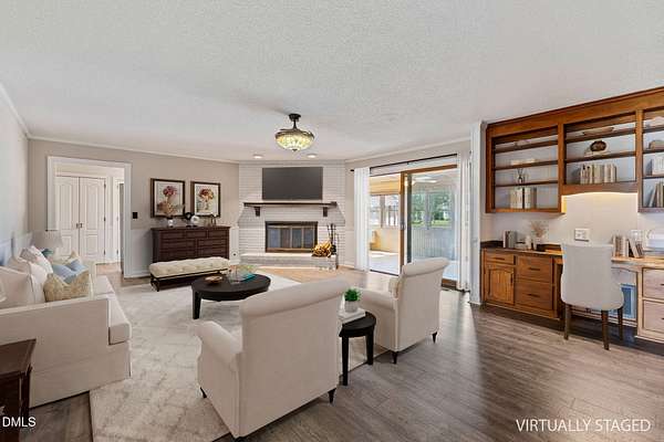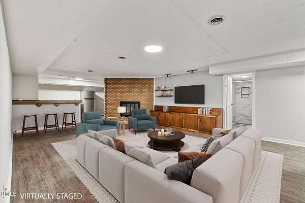 Incredible opportunity to own over 5,300sqft of living space on 1.7 acres in the heart of downtown Benson! This truly unique property features a fully finished basement and attic, providing incredible flexibility for multi-generational living, entertaining, or hobby space.The main level welcomes you with an entry foyer, formal dining room, and expansive living room with beautiful bay windows. The country kitchen features upgraded appliances, an eat-in area, and a beverage bar with beverage refrigerator and built-in microwave--perfect for hosting. A separate family room with custom built-ins and wood-burning fireplace opens to an enclosed patio with a wood-burning stove, creating the perfect year-round gathering space. The primary suite includes three closets, an upgraded tile shower, and private access to the enclosed patio. Secondary bedrooms are spacious and offer generous closet space. The finished attic provides additional living quarters complete with a full bath, walk-in closet, and combined sleeping/living area. The fully finished basement offers endless possibilities with a full kitchen, full bath, large living room with wood-burning fireplace, two flex rooms with closets, and additional storage rooms. With both interior and exterior access, the basement is ideal for an in-law suite, guest quarters, recreation space, or extended living area. Outside, enjoy a beautifully landscaped property with mature pine and pecan trees, blueberry bushes, muscadine grapevines, and fruit trees. Additional features include a hot tub, fenced front yard, covered walkway and carport. The detached outbuilding is a standout feature, offering a heated and cooled front section with half bath, while the rear portion includes work benches and a loft for additional storage. Recent updates include appliances, windows, flooring throughout the main level and basement, and a whole-home water filtration system.Enjoy the charm of country living with the convenience of downtown Benson, just minutes from I-95 and I-40. A rare opportunity offering space, versatility, and endless possibilities.