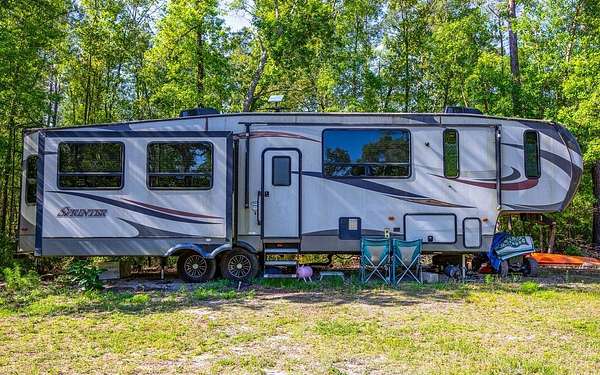 7.58 acres on the Suwannee River with improvements already in place, ready for your weekend getaway, seasonal escape, or future home site! If you’ve been looking for a place to slow down and have your own space, this property gives you the setup to start enjoying it right away while planning what’s next. A new well, new electric service with a full 50-amp RV hookup, and a recently installed aerobic septic system designed for a 1,600 sq ft home are already in place. An approved building variance allows for more flexibility in where a home can be placed, helping maximize useable space and take advantage to the river views. Approximately 1,000 feet along the road frontage is board fenced with an automated gate, with additional wire fencing in place along other portions of the property. A 2017 Keystone Sprinter is on site is in the sale (as-is). Located just 1 mile (approximately 2 minutes) from I-75, you get the best of both worlds. Privacy on the river with quick access to Lake City and Live Oak, Florida within about 15 minutes. Call now to set up a showing! It's time for you to enjoy YOUR own property in beautiful North Florida on the Historic Suwannee River!
