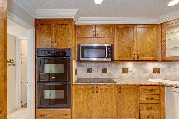 - Dishwasher, Disposal, Double Oven, Electric Range, Microwave, Self Cleaning Oven