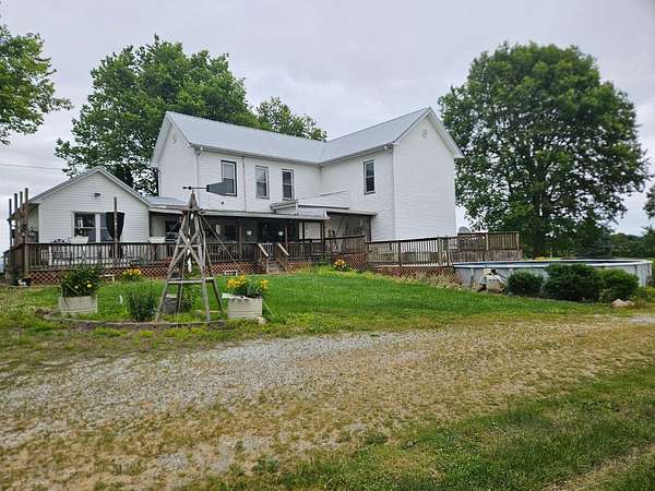 country living minutes from town with mini farm capabilities, two story farmhouse with kitchen and family room additions for plentiful space, 2 story, 3 bedroom, 2 full baths, covered patio with deck leading to above ground pool, pole barn, several utility sheds and poultry house, six various fruit trees including cherry, apple, peach and pear, two wells on property, dish network and internet present, new water heater and new water softener